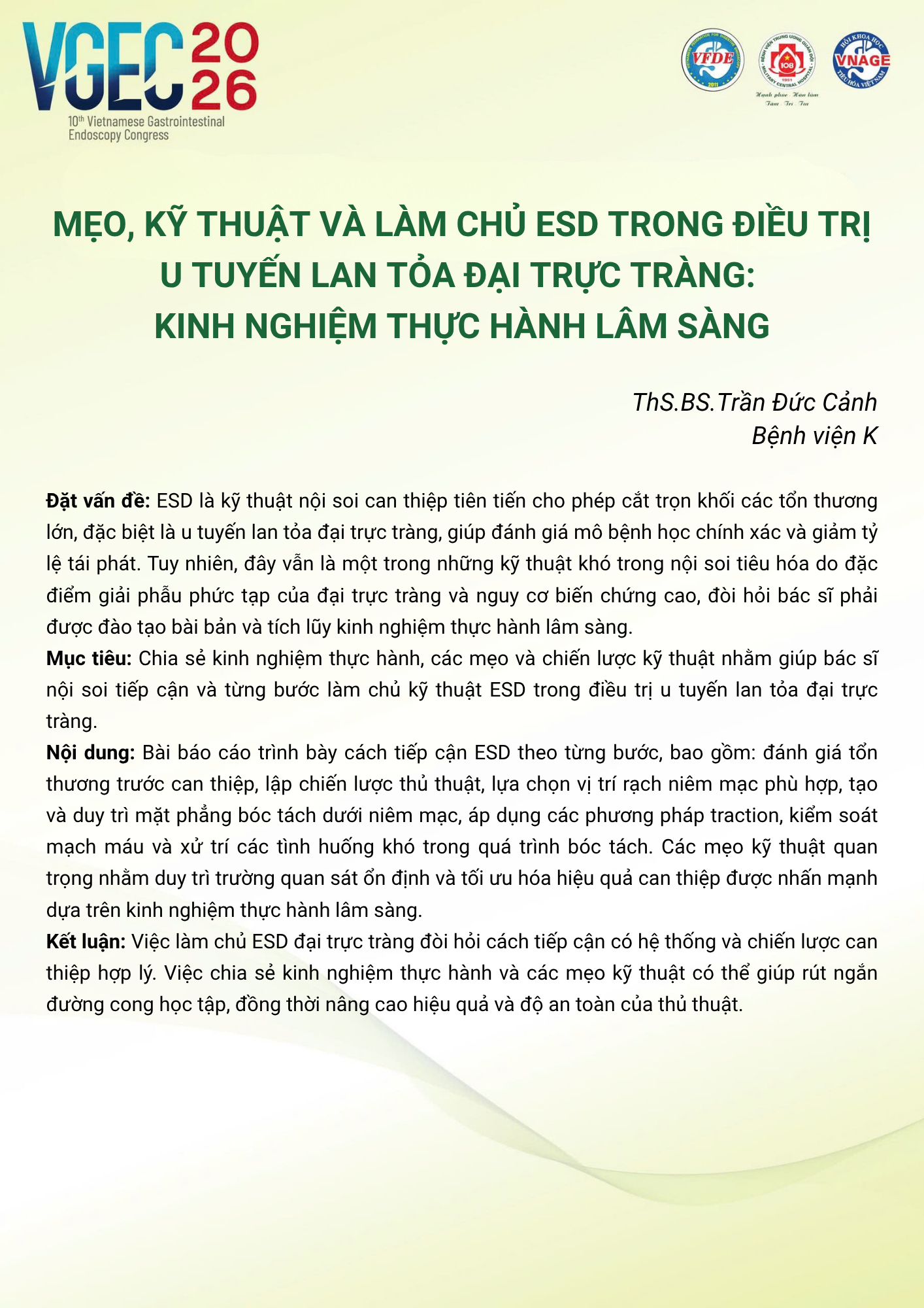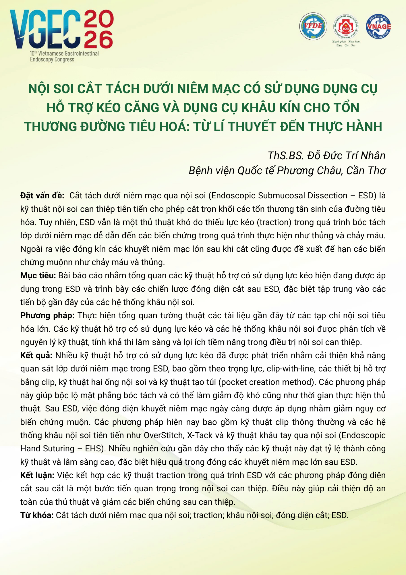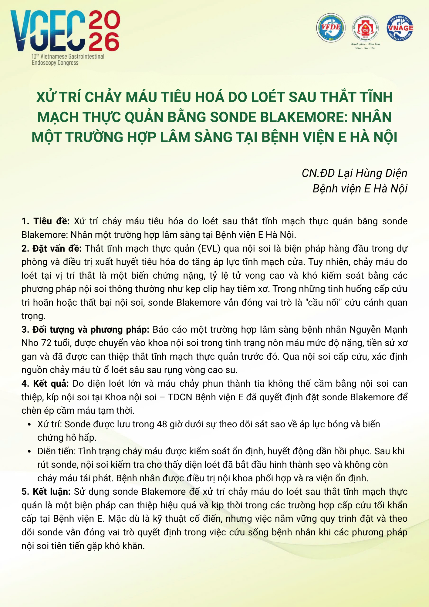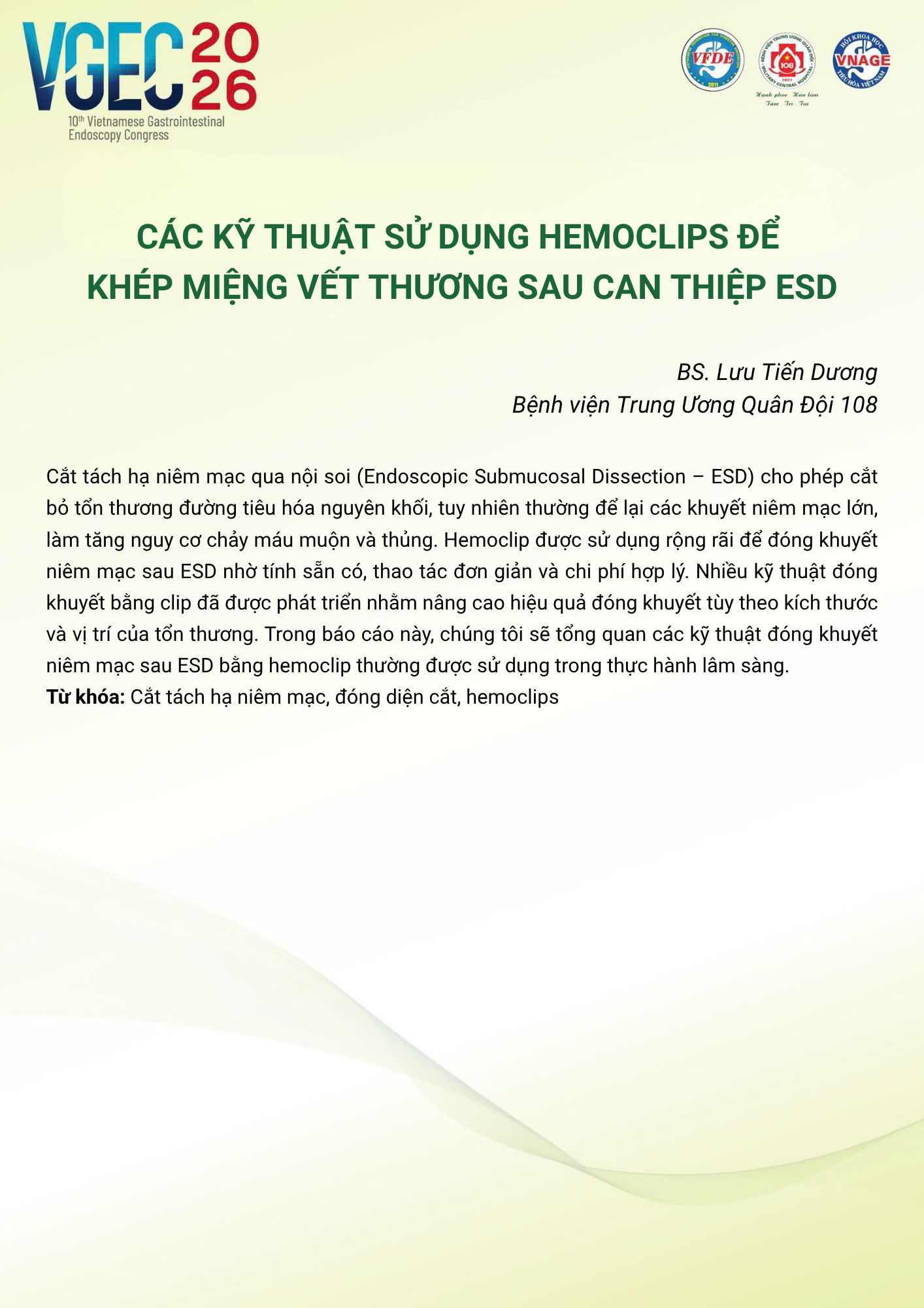 CHỦ ĐỀ: CÂU LẠC BỘ CÁC NHÀ NỘI SOI TRẺ/ Topic: Young Endoscopist Club