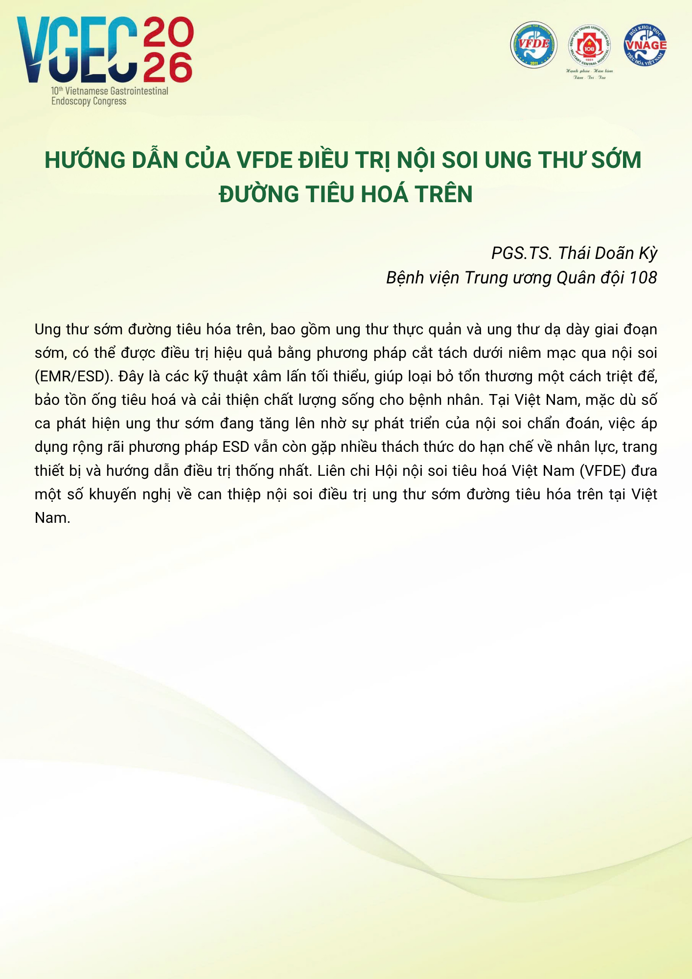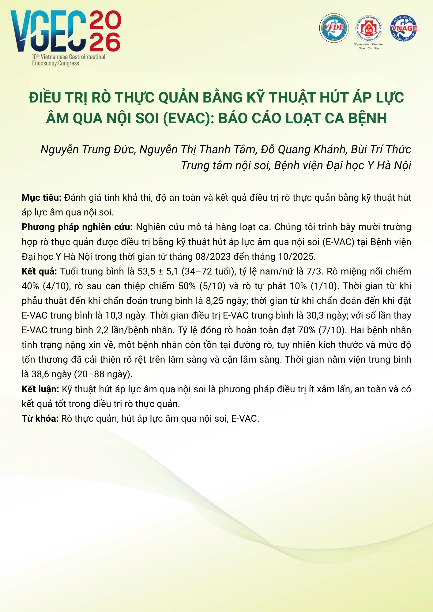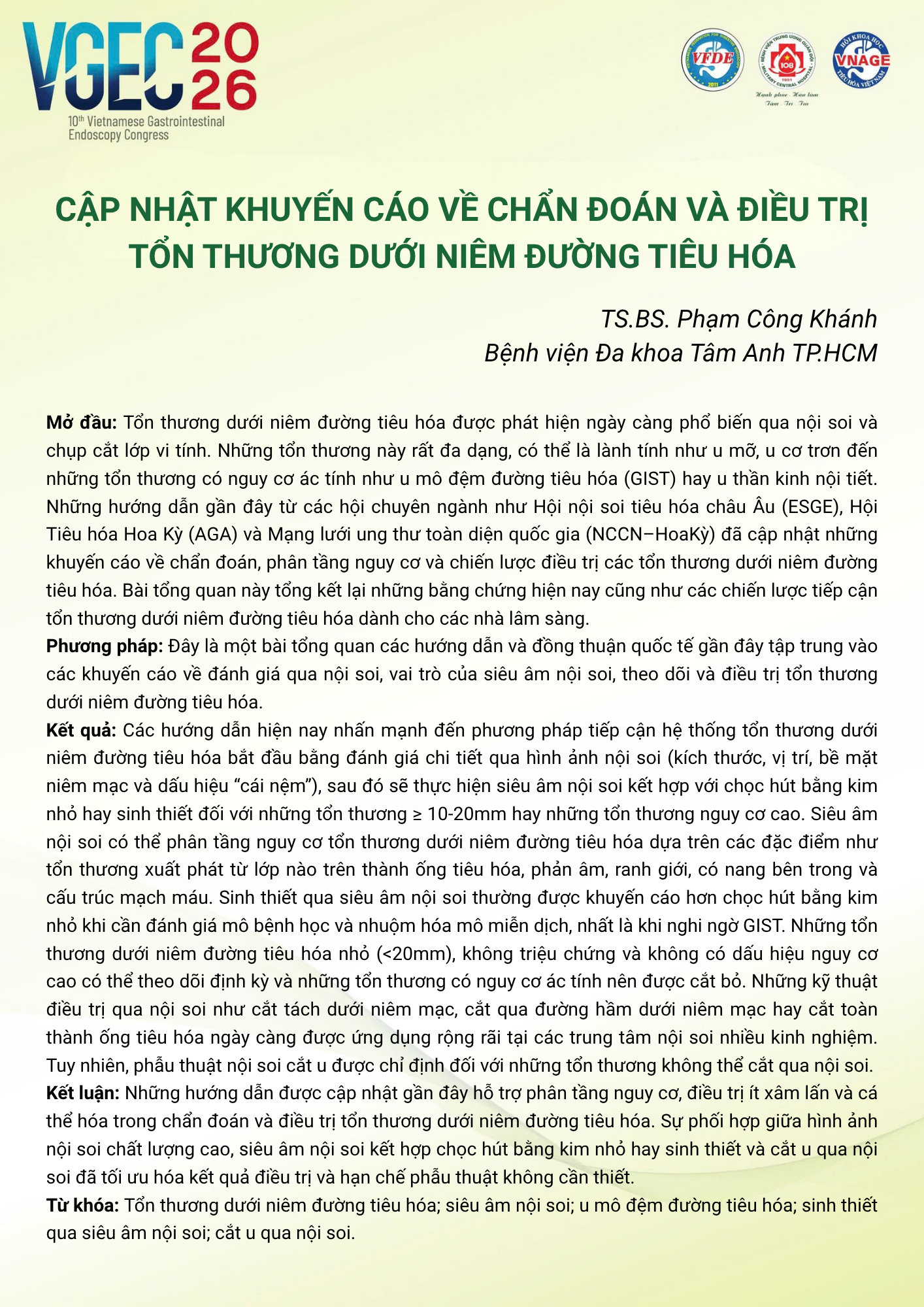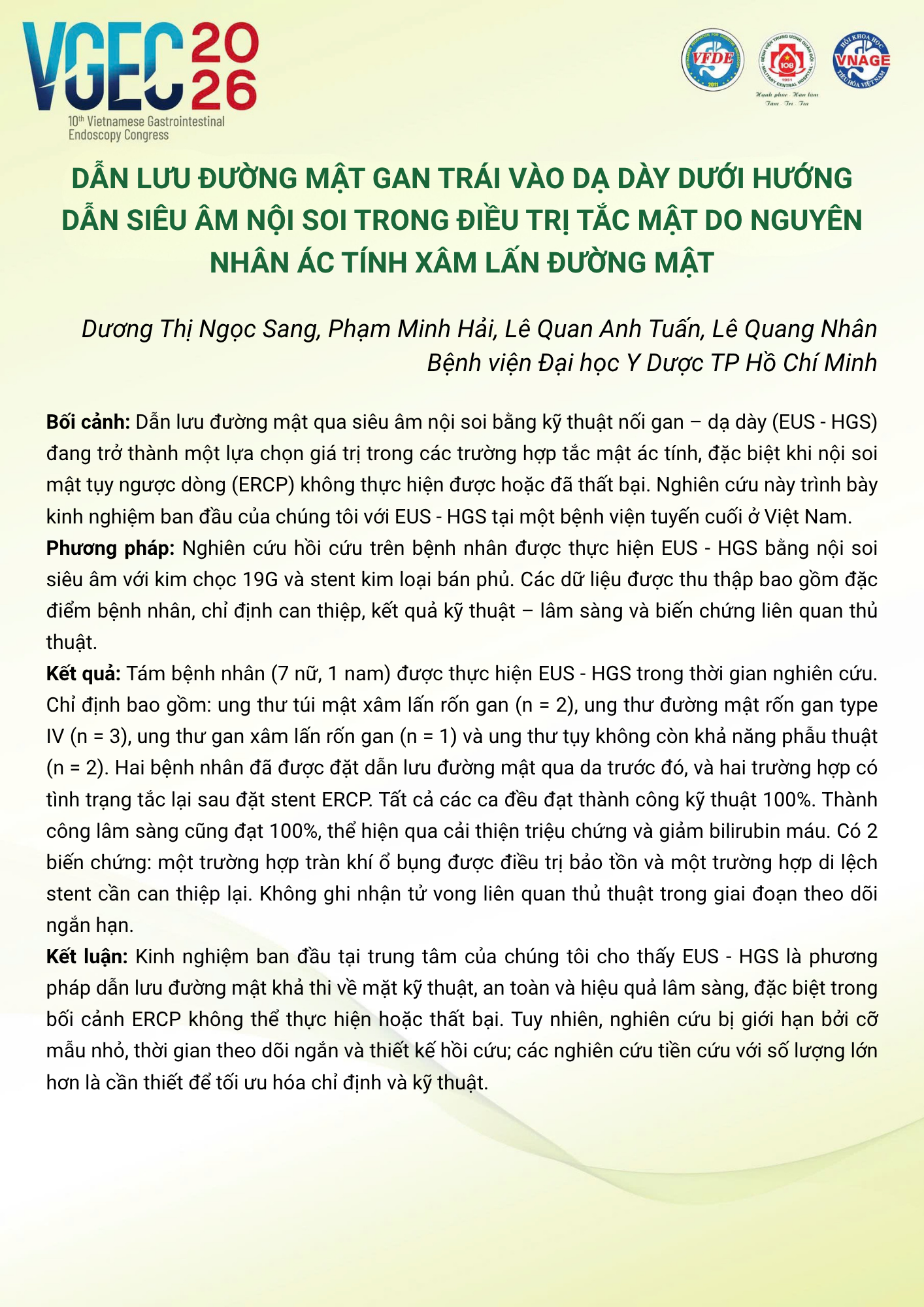 CHỦ ĐỀ: CÂU LẠC BỘ CÁC NHÀ NỘI SOI TRẺ/ Topic: Young Endoscopist Club