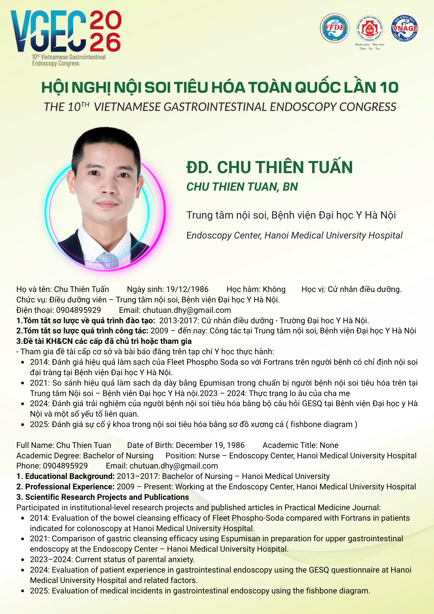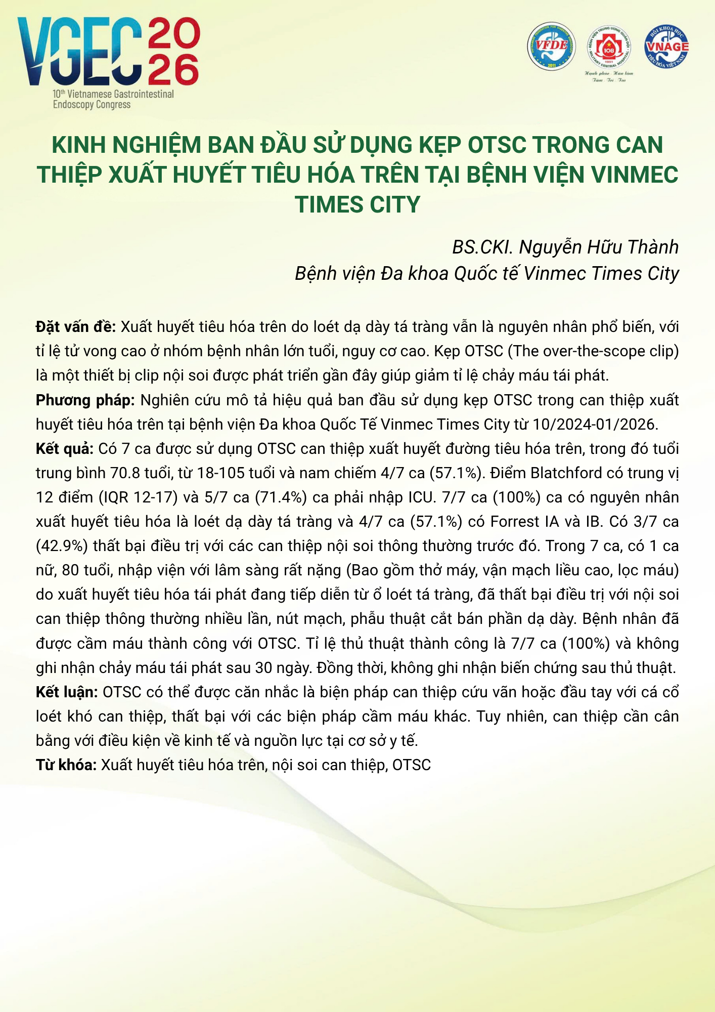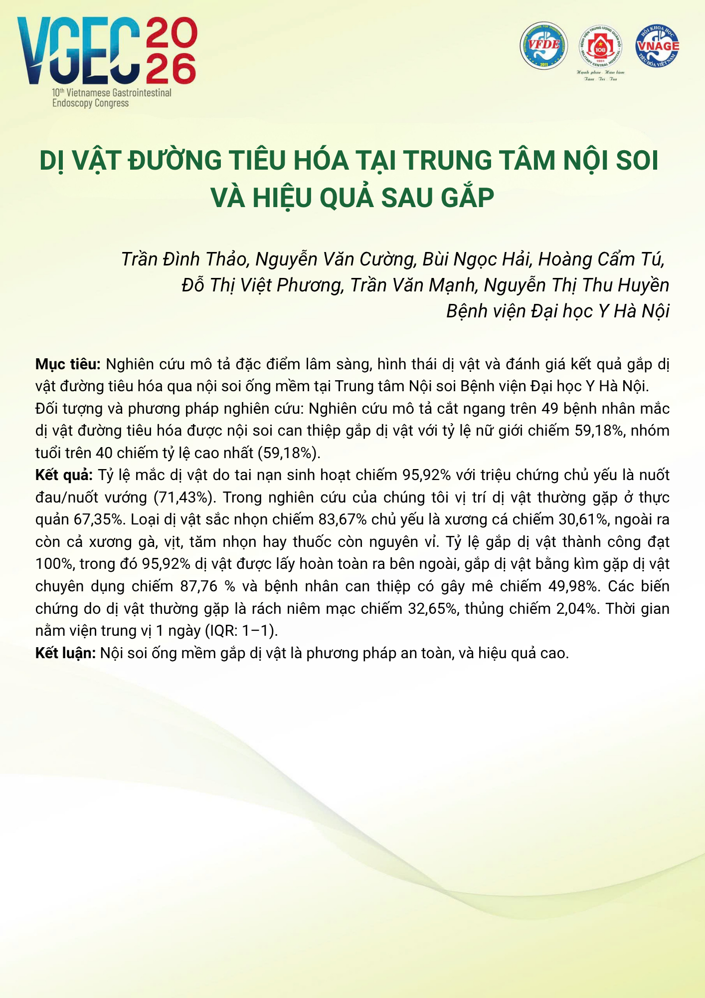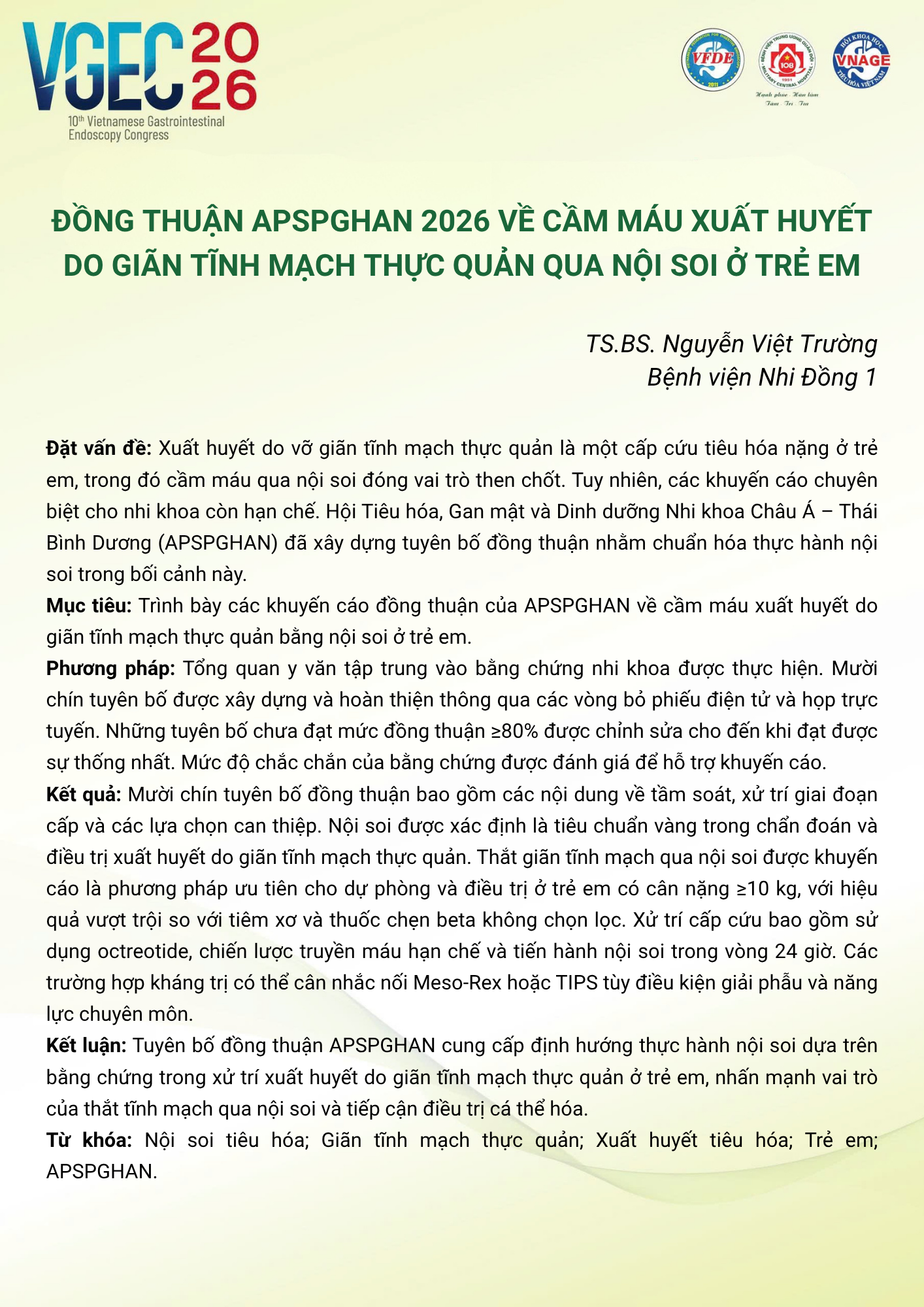 CHỦ ĐỀ: CÂU LẠC BỘ CÁC NHÀ NỘI SOI TRẺ/ Topic: Young Endoscopist Club