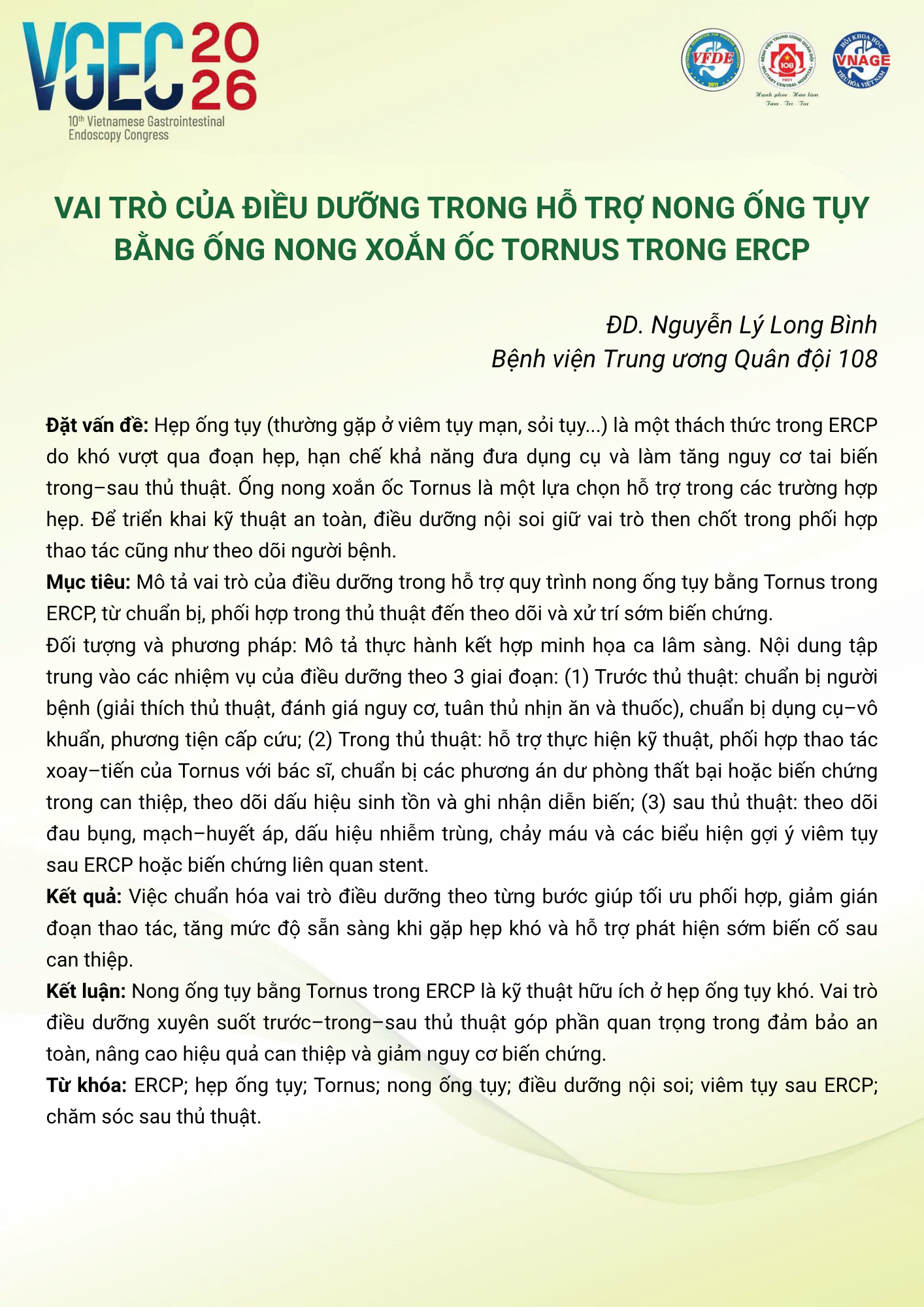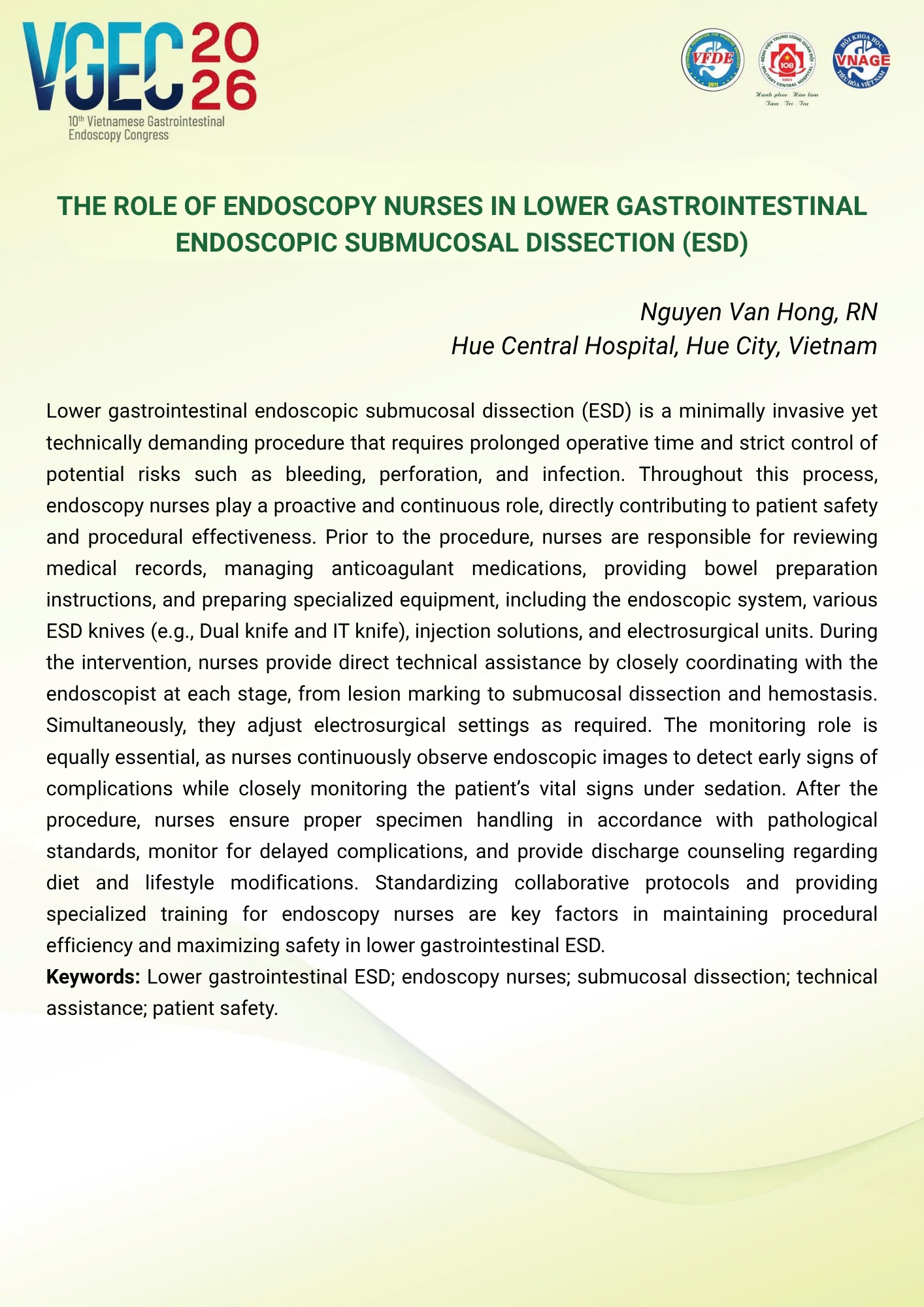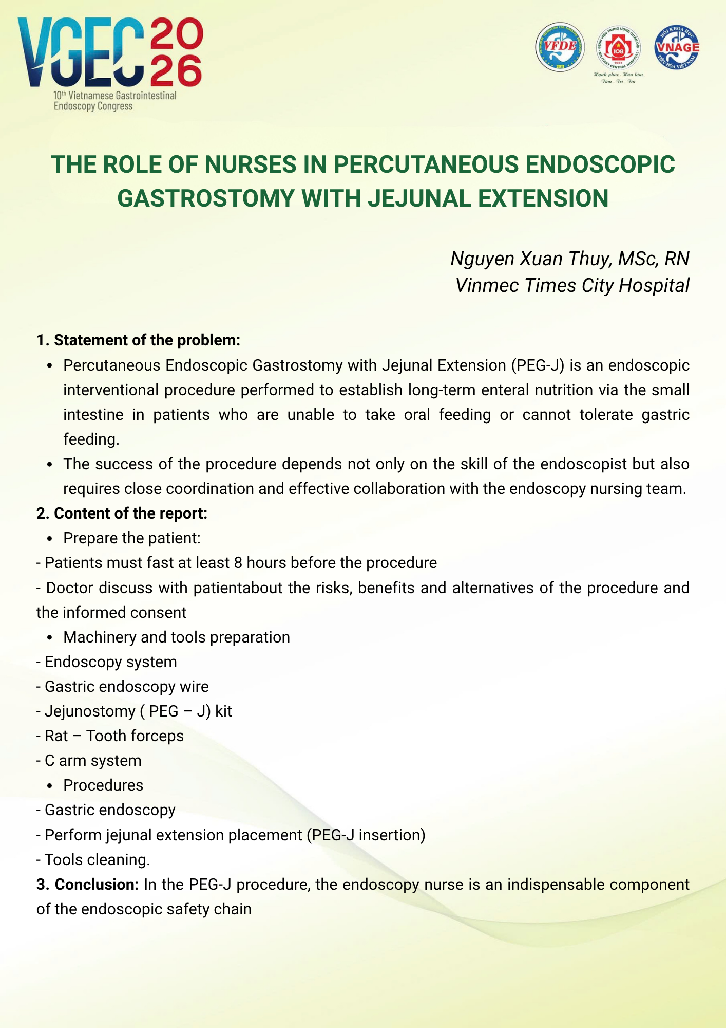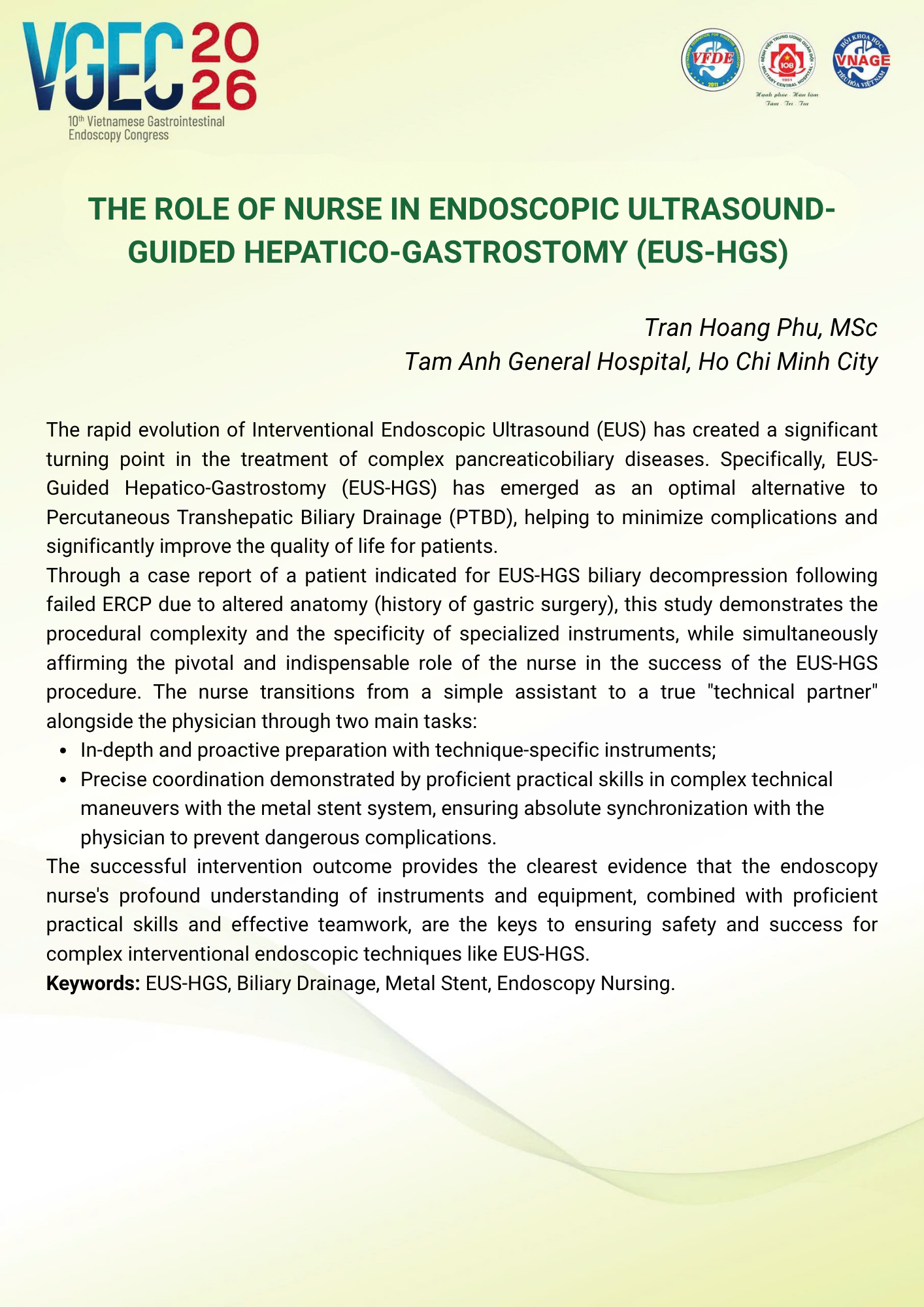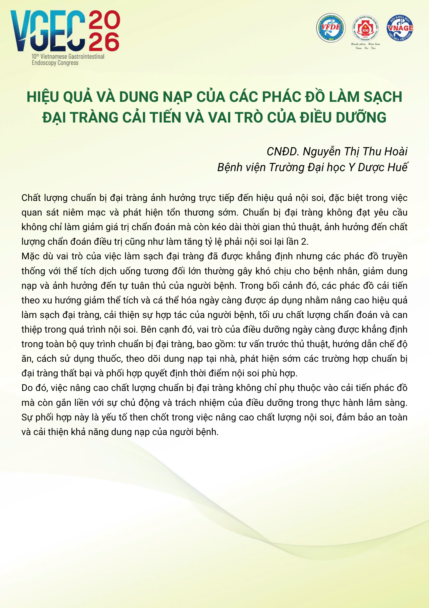 CHỦ ĐỀ: VAI TRÒ CỦA ĐIỀU DƯỠNG NỘI SOI TRONG TỐI ƯU HÓA AN TOÀN VÀ HIỆU QUẢ CỦA CÁC THỦ THUẬT NỘI SOI CAN THIỆP