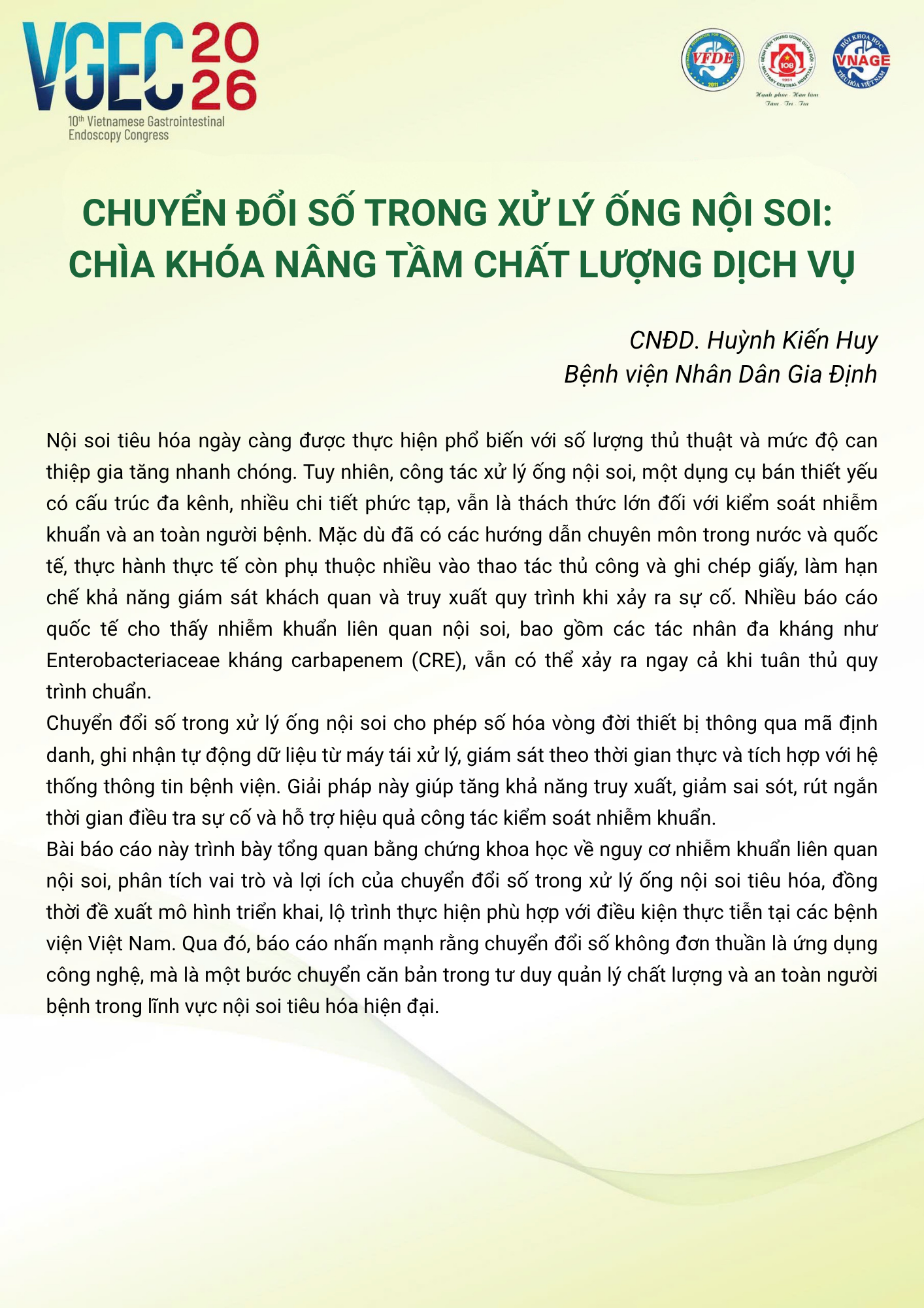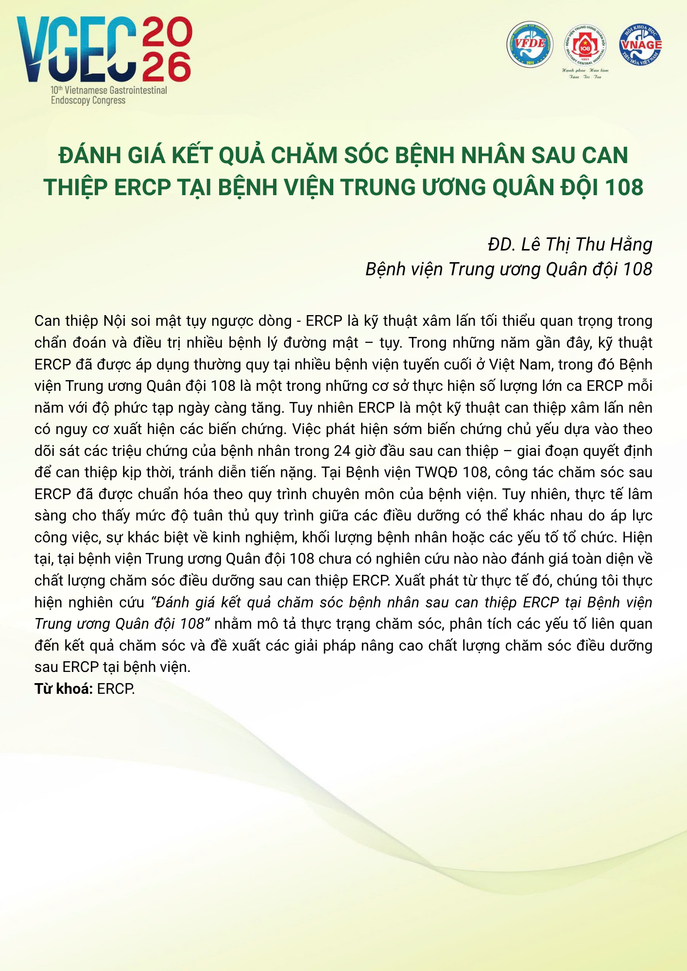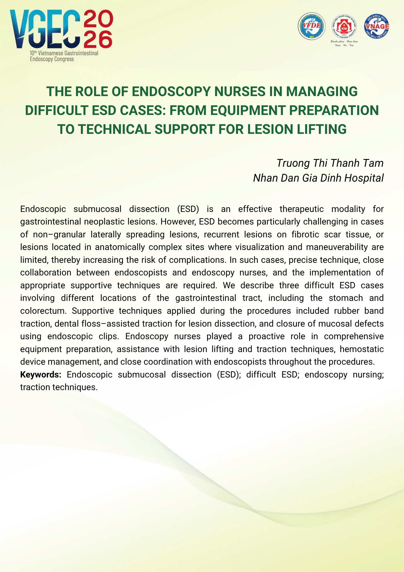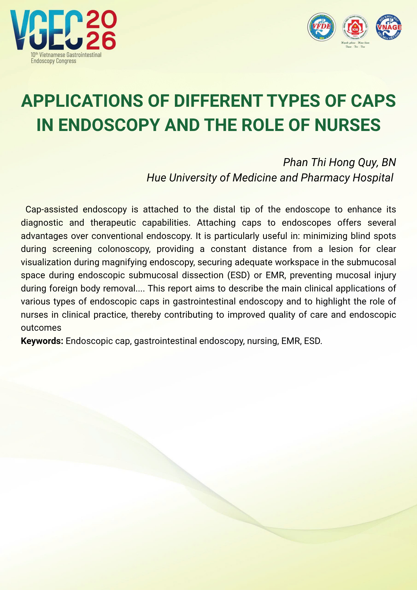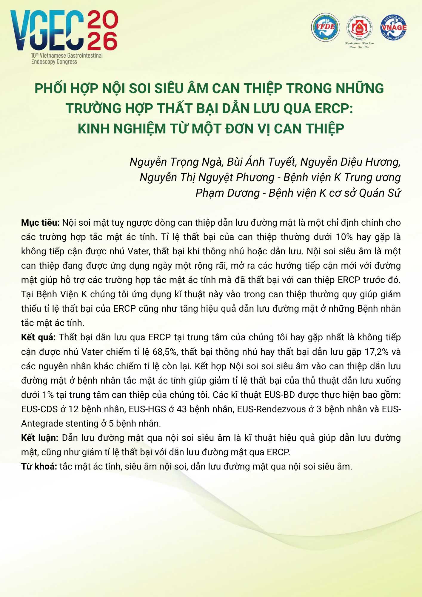 CHỦ ĐỀ: VAI TRÒ CỦA ĐIỀU DƯỠNG NỘI SOI TRONG TỐI ƯU HÓA AN TOÀN VÀ HIỆU QUẢ CỦA CÁC THỦ THUẬT NỘI SOI CAN THIỆP