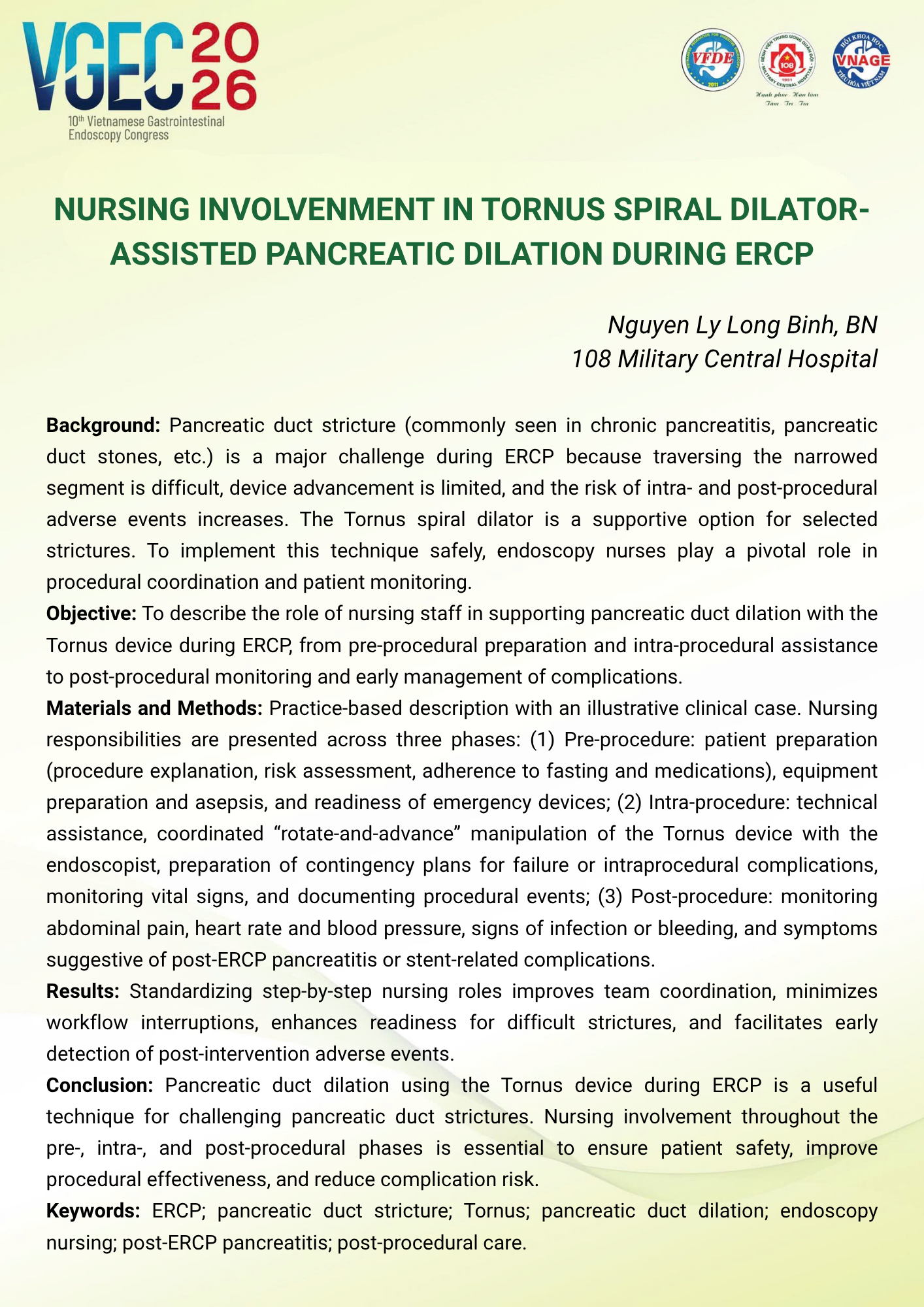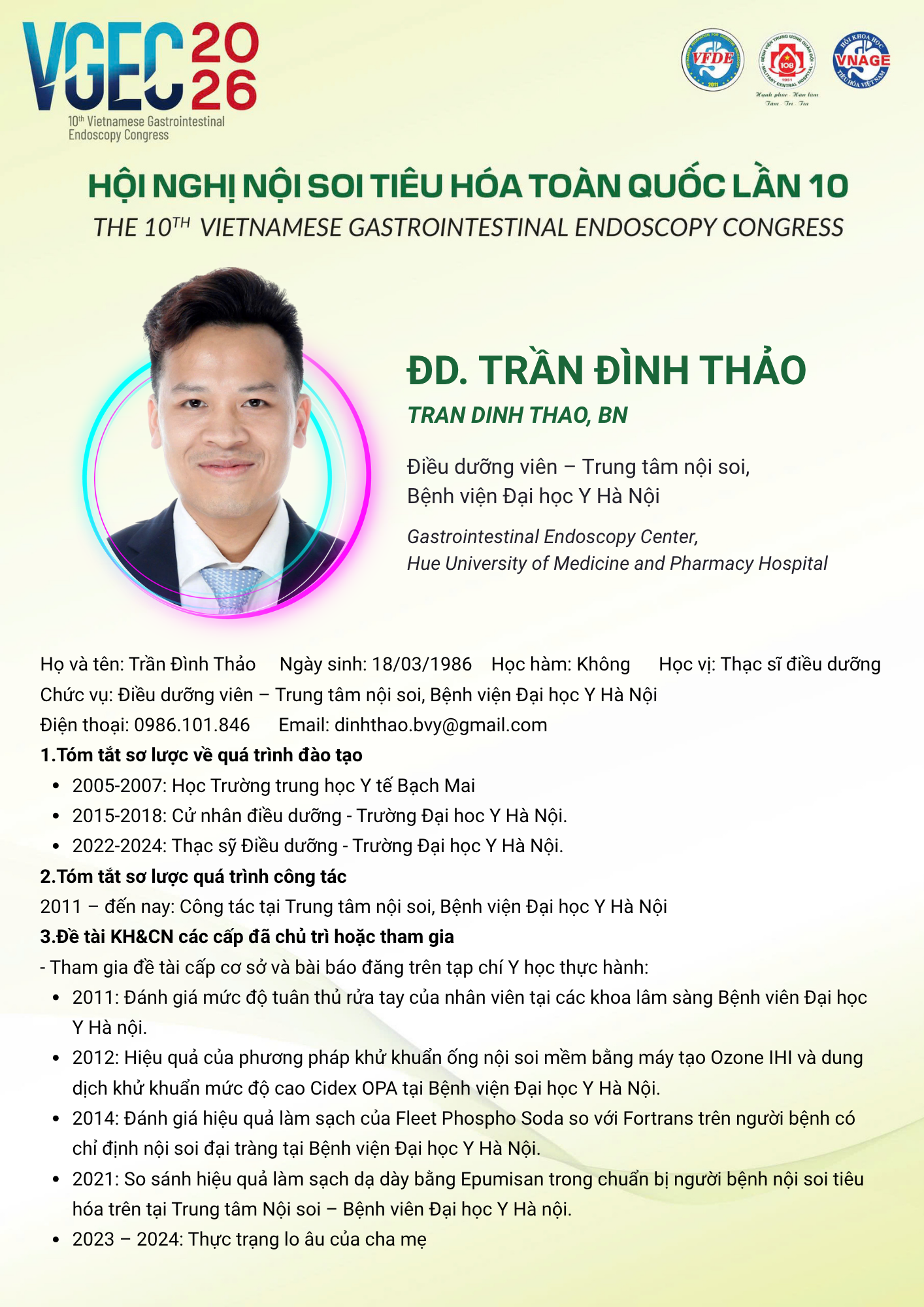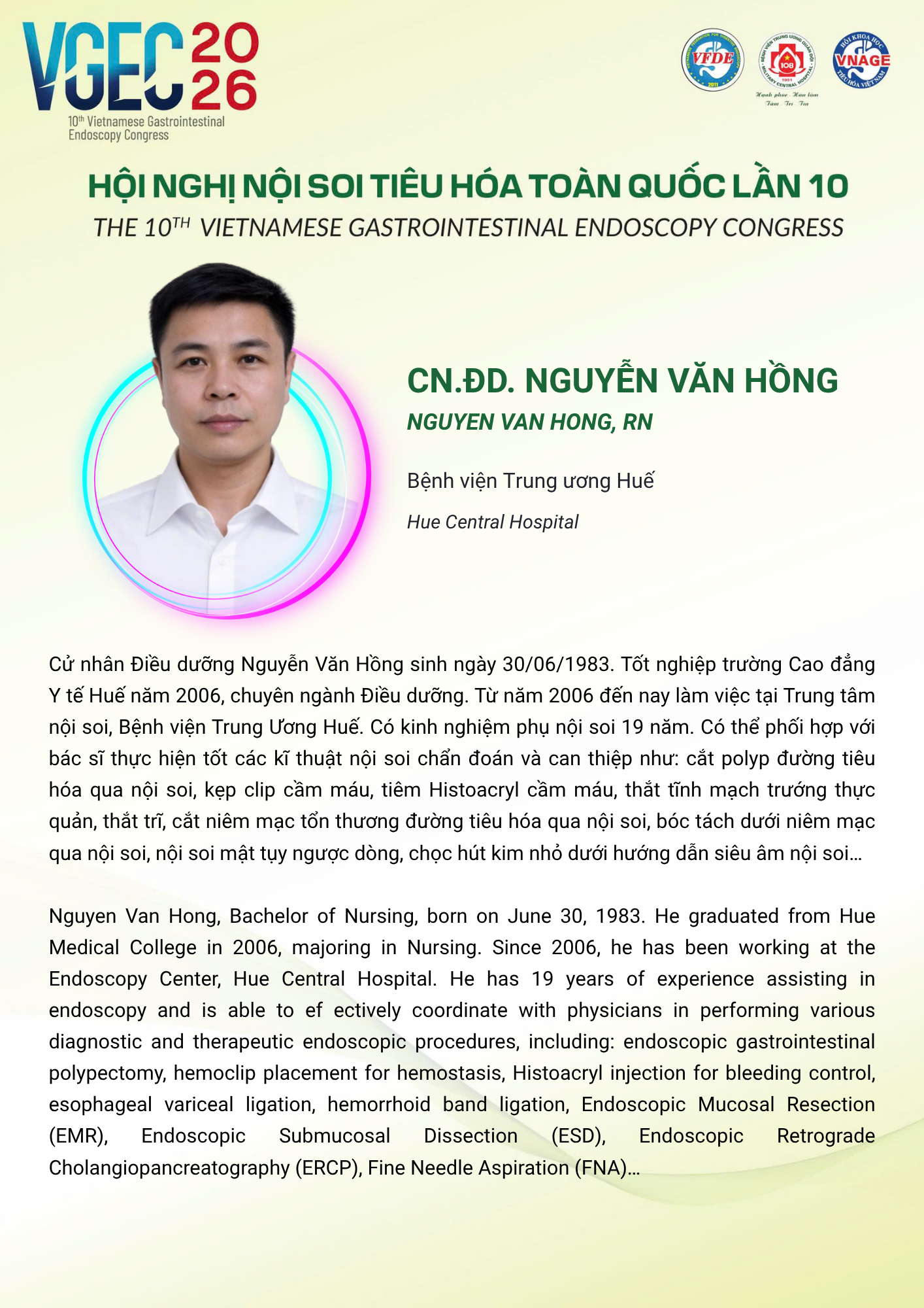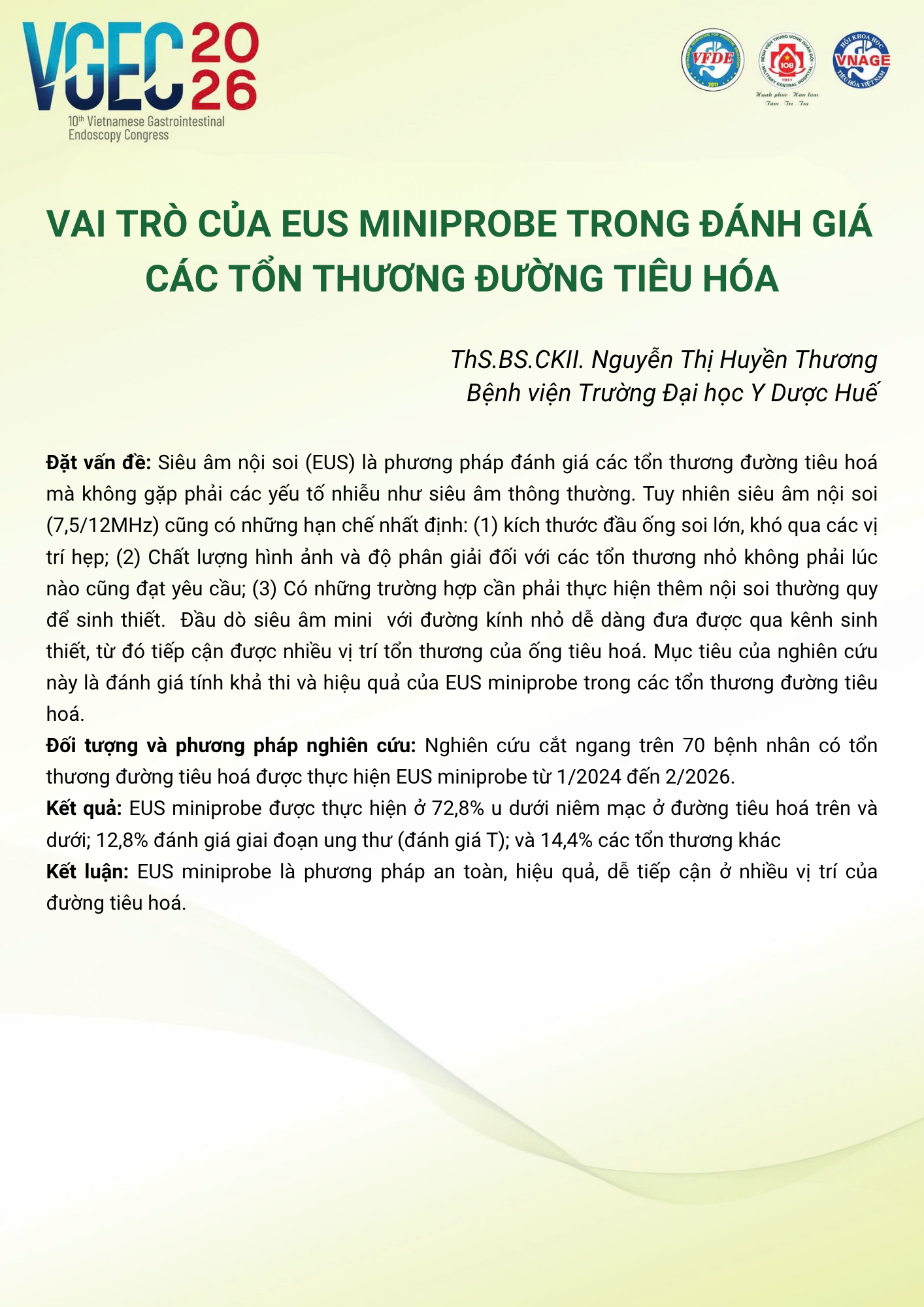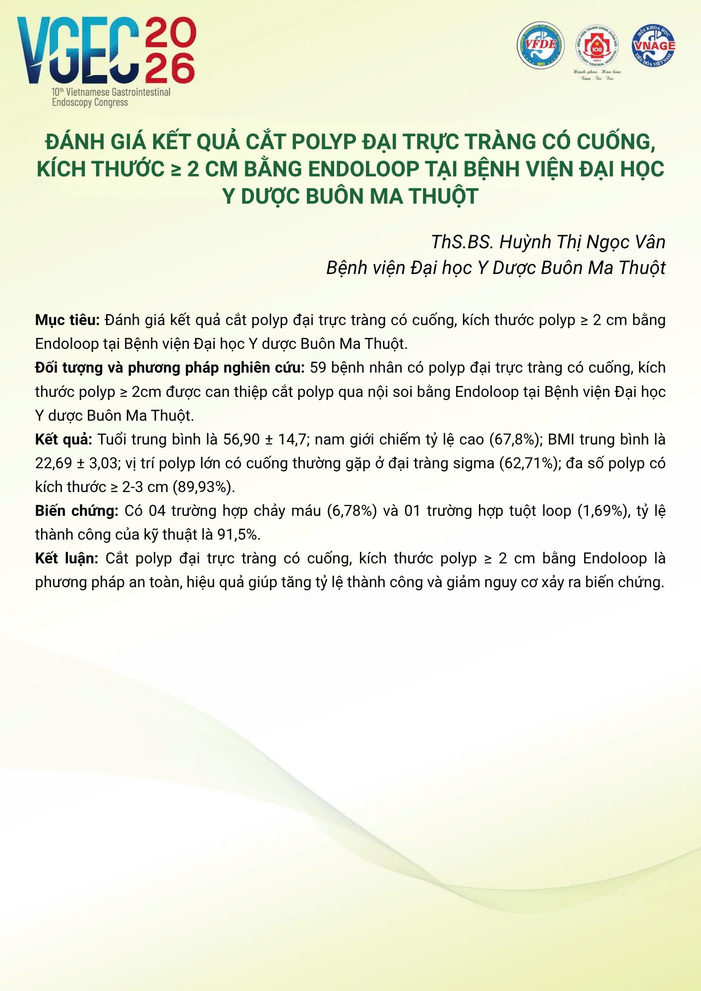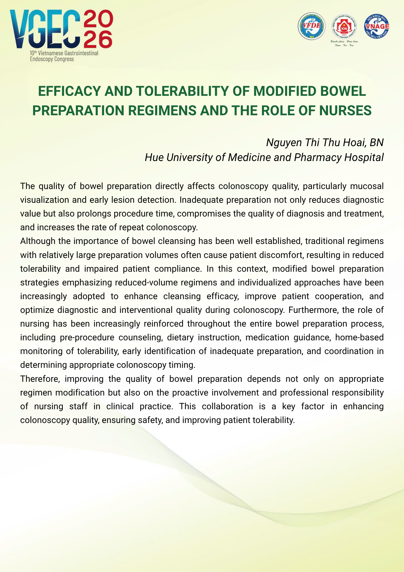 CHỦ ĐỀ: VAI TRÒ CỦA ĐIỀU DƯỠNG NỘI SOI TRONG TỐI ƯU HÓA AN TOÀN VÀ HIỆU QUẢ CỦA CÁC THỦ THUẬT NỘI SOI CAN THIỆP