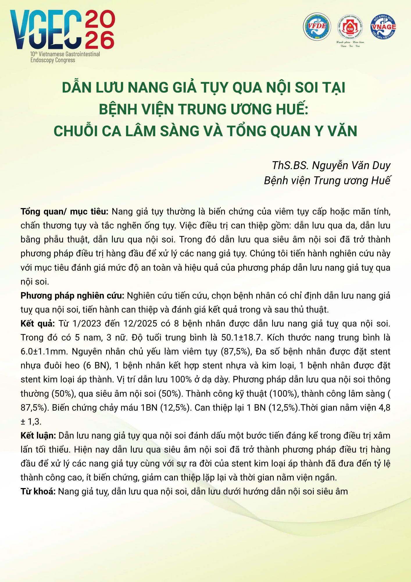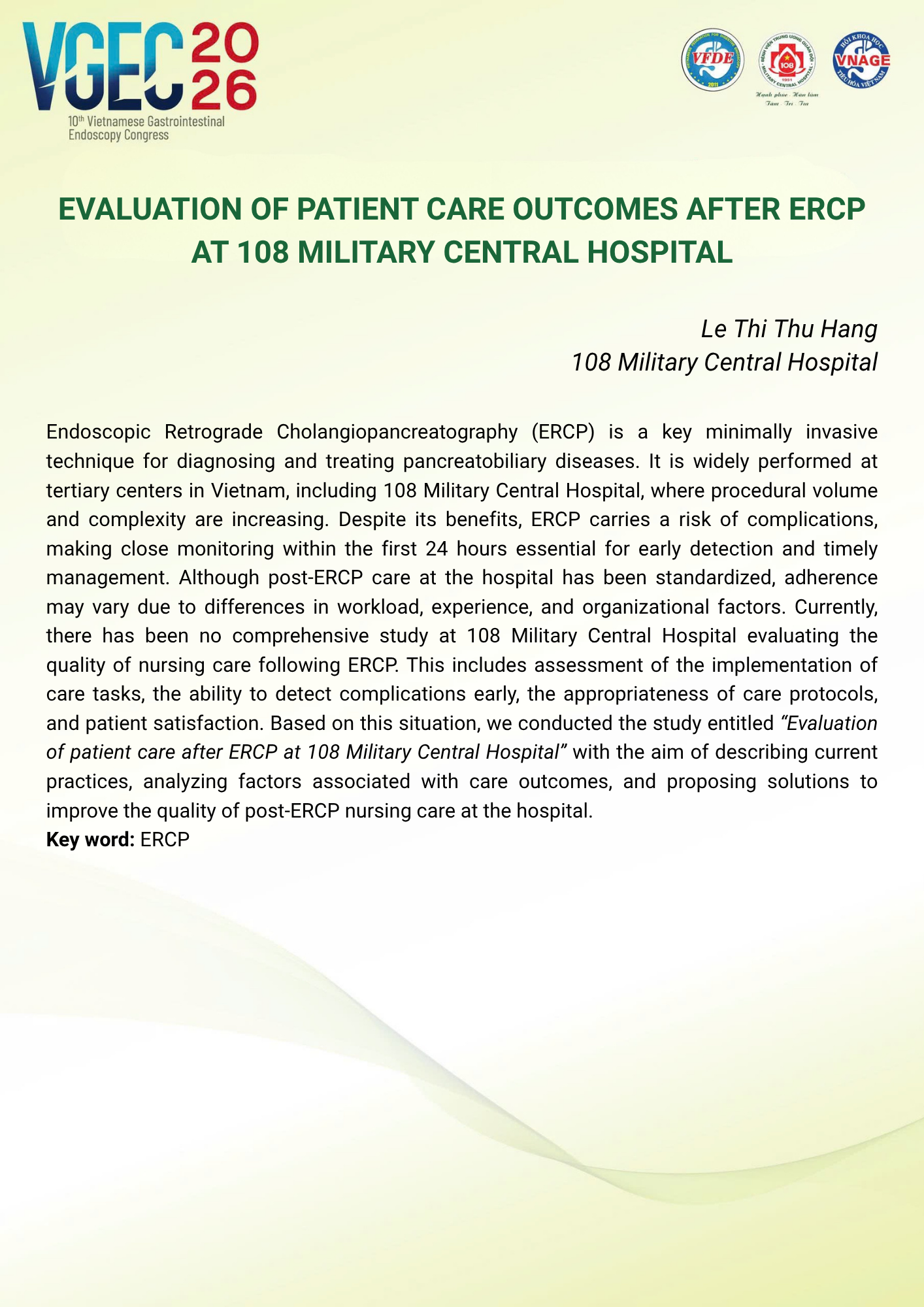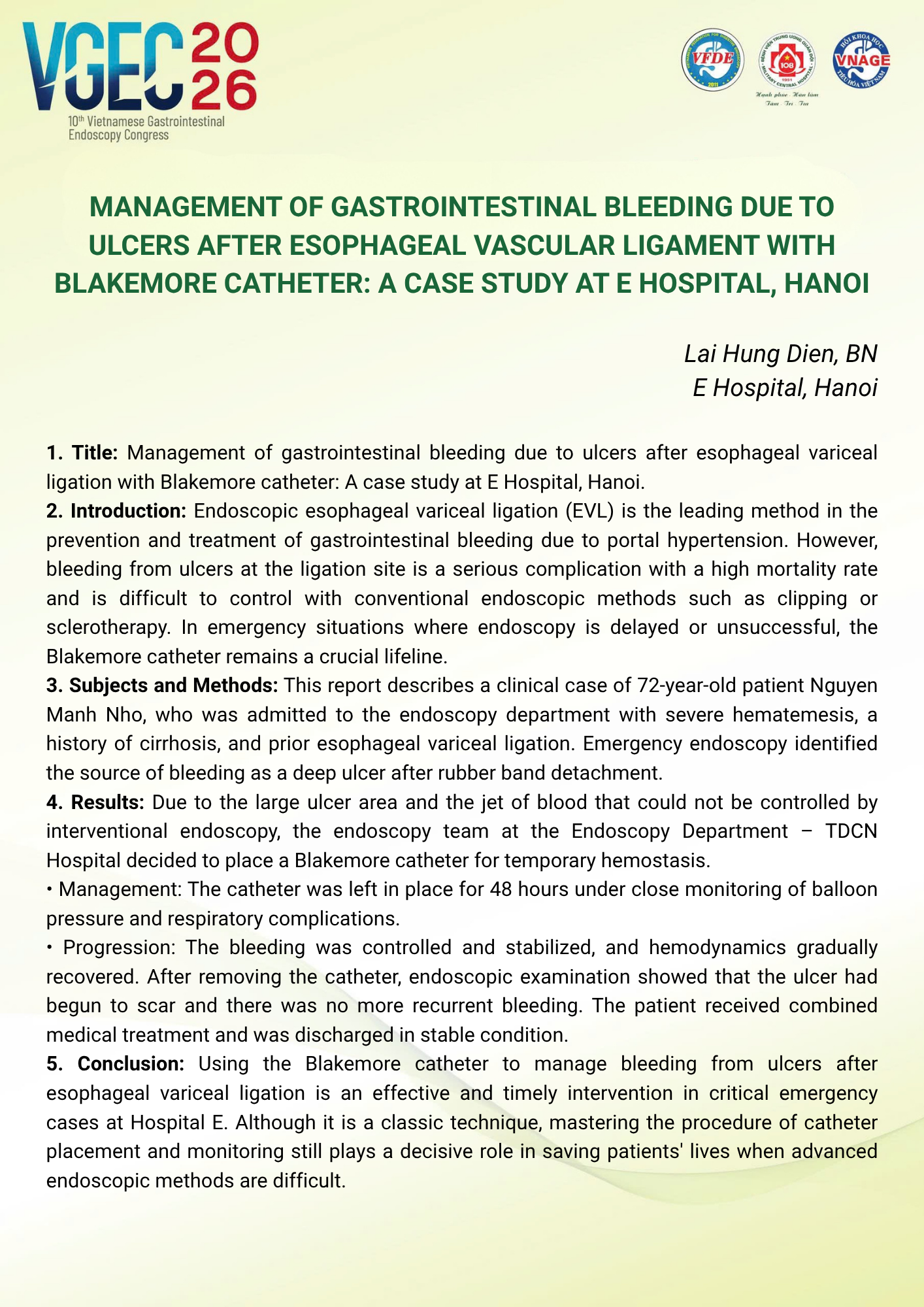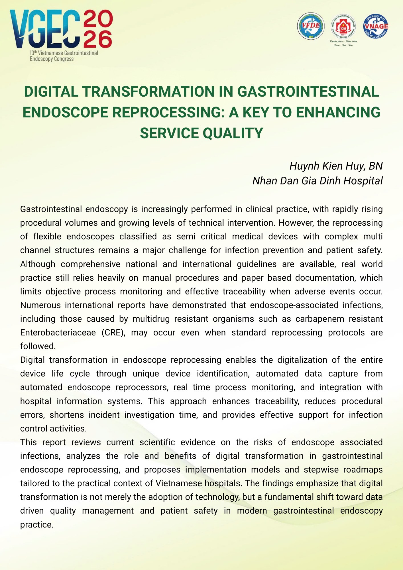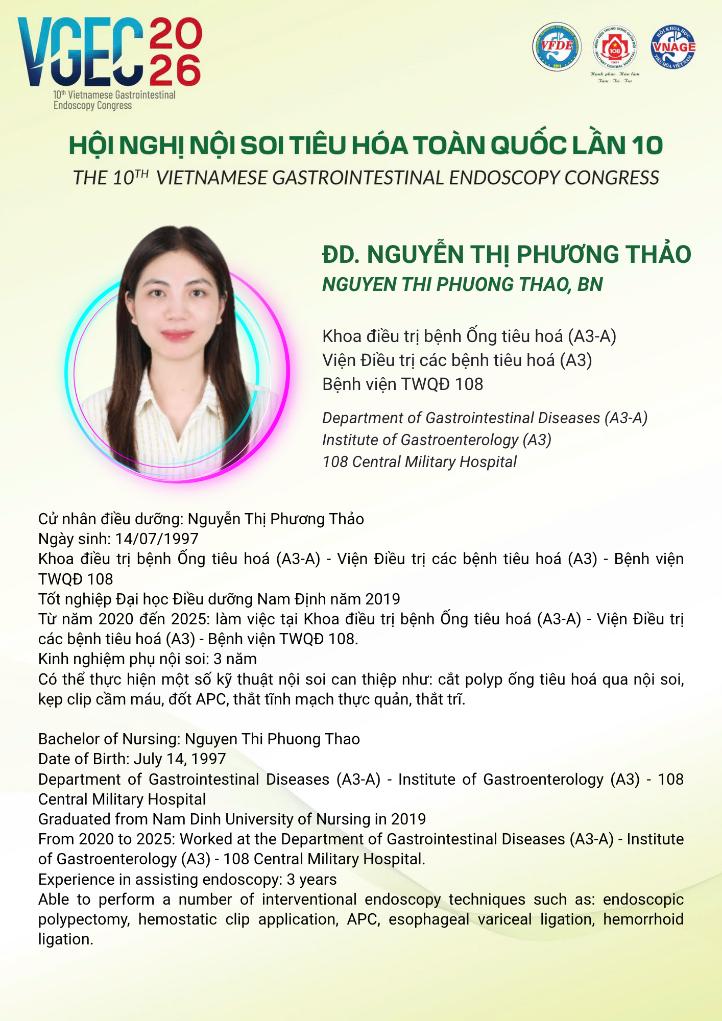 CHỦ ĐỀ: VAI TRÒ CỦA ĐIỀU DƯỠNG NỘI SOI TRONG TỐI ƯU HÓA AN TOÀN VÀ HIỆU QUẢ CỦA CÁC THỦ THUẬT NỘI SOI CAN THIỆP