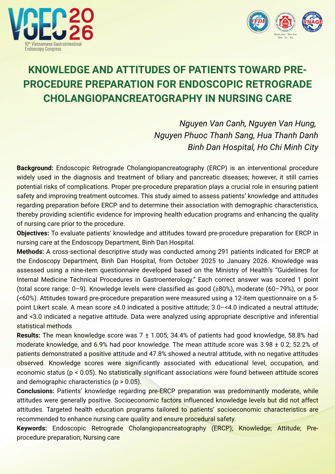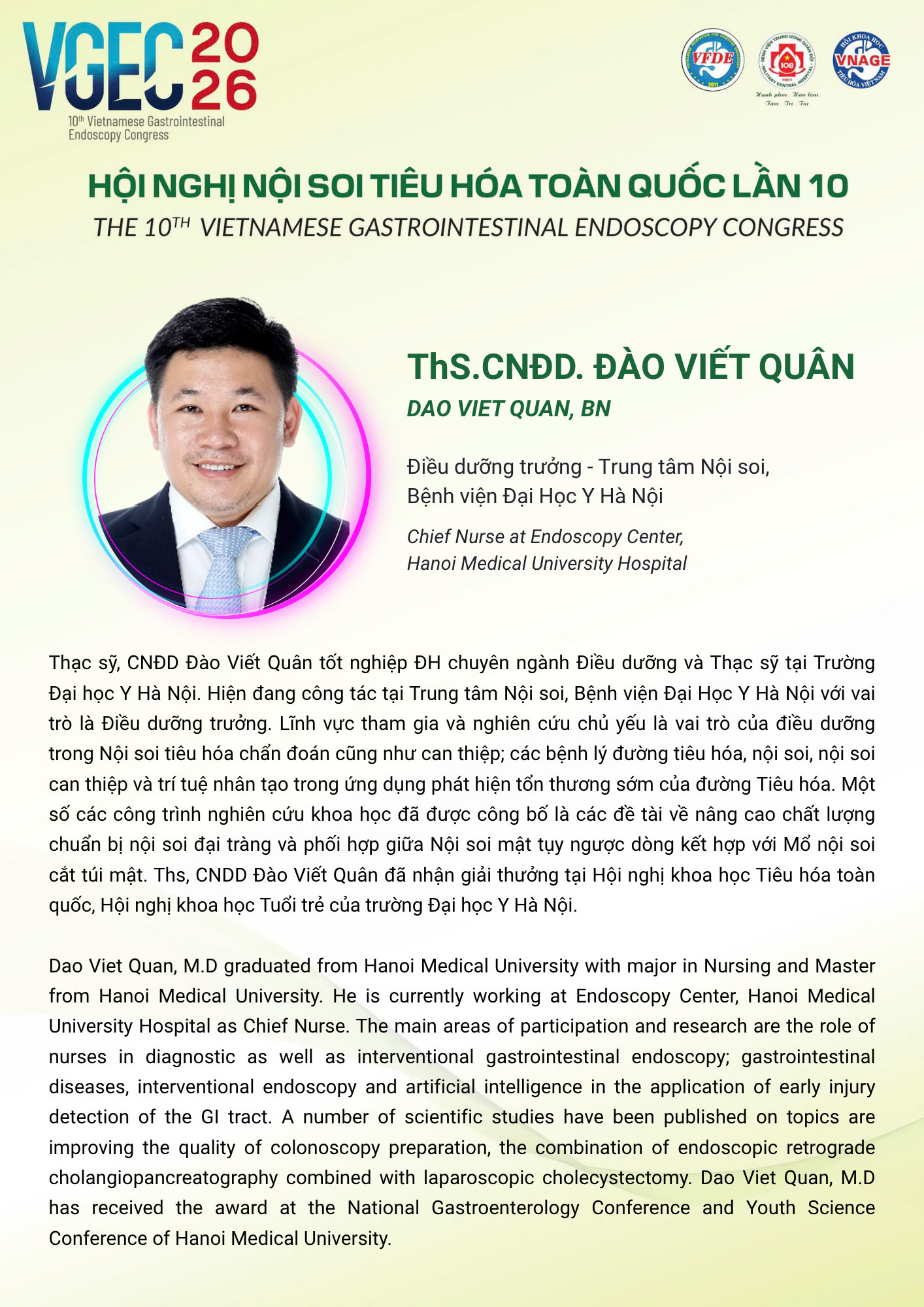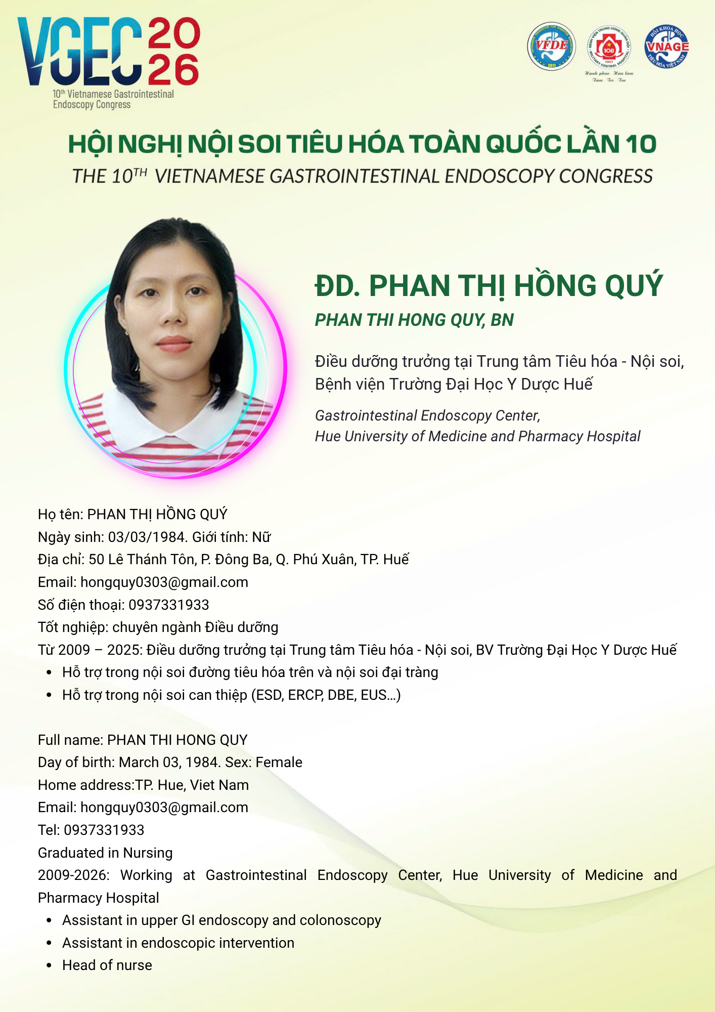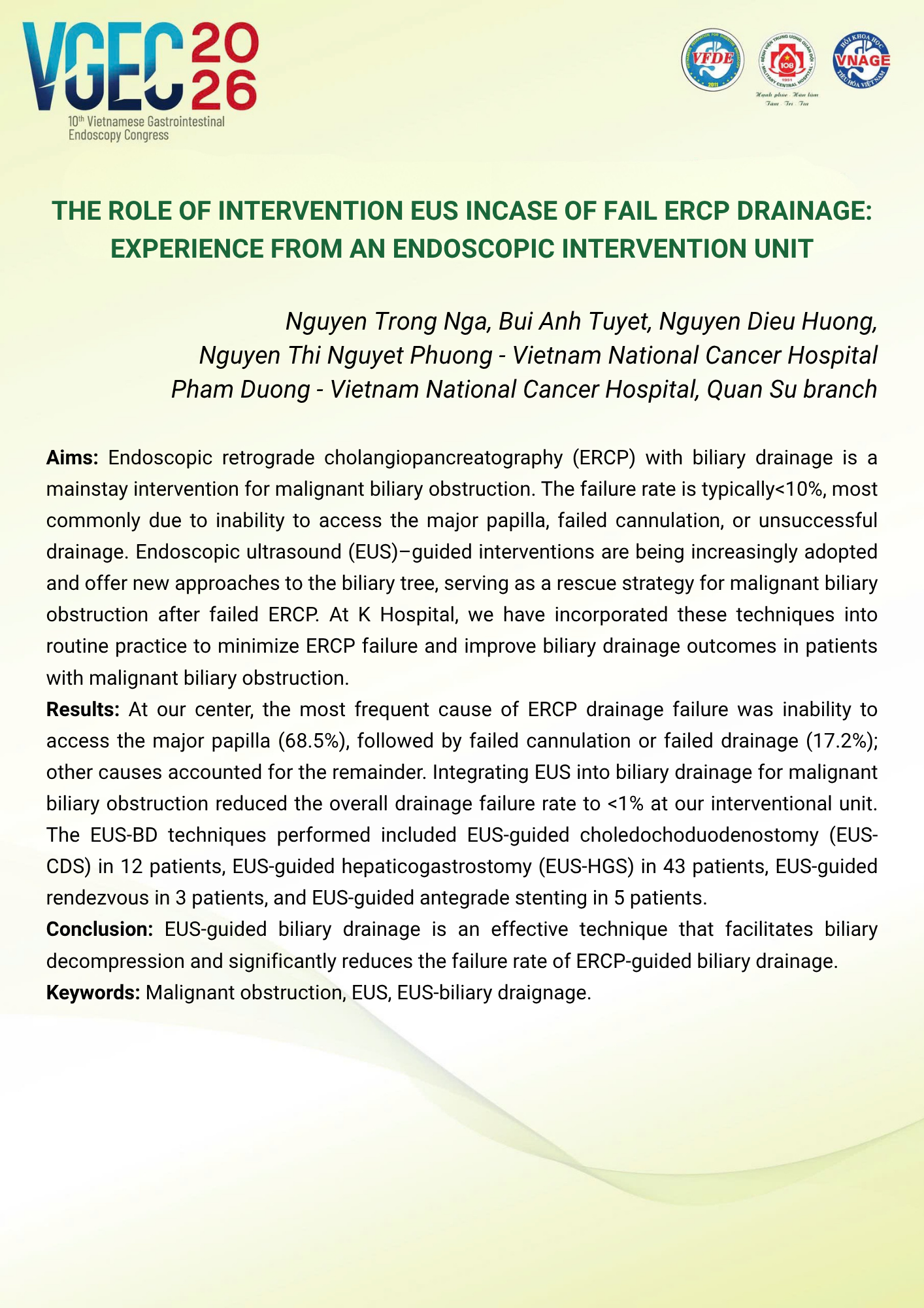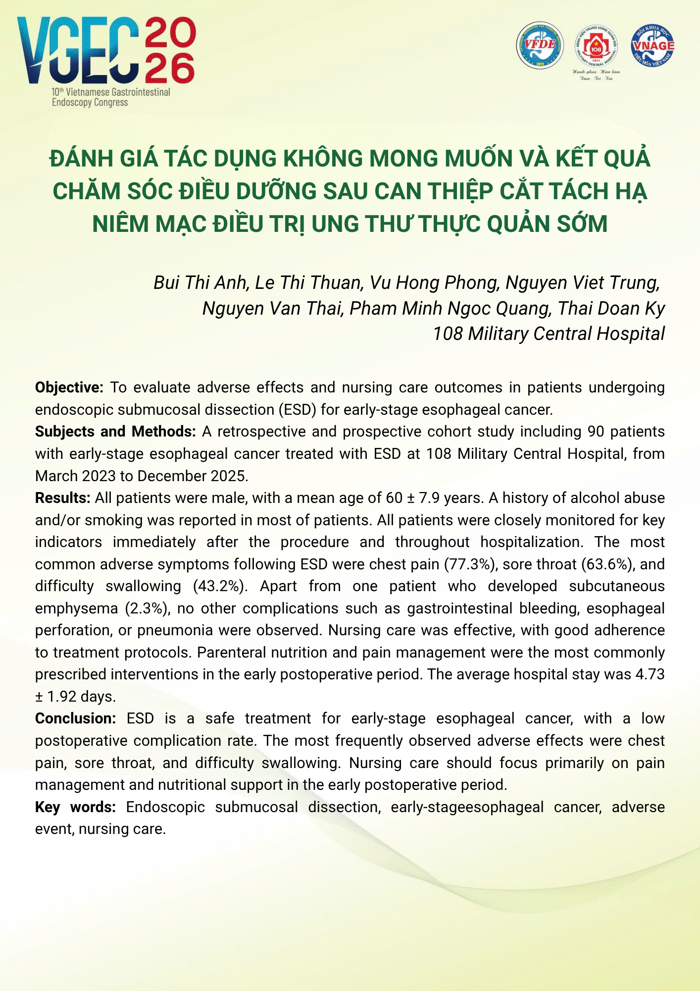 CHỦ ĐỀ: VAI TRÒ CỦA ĐIỀU DƯỠNG NỘI SOI TRONG TỐI ƯU HÓA AN TOÀN VÀ HIỆU QUẢ CỦA CÁC THỦ THUẬT NỘI SOI CAN THIỆP