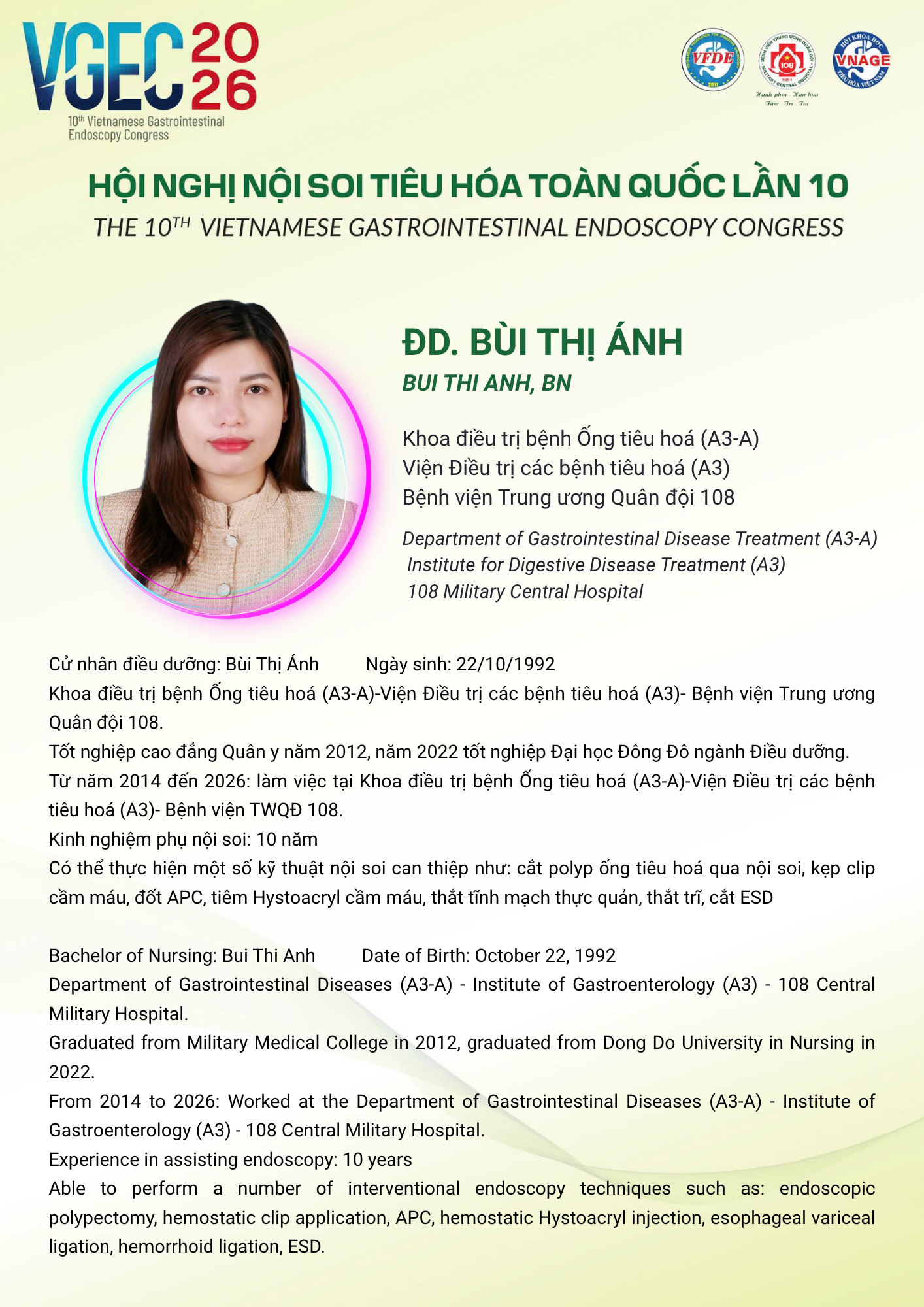 CN.ĐD Bùi Thị Ánh – Bệnh viện Trung ương Quân đội 108