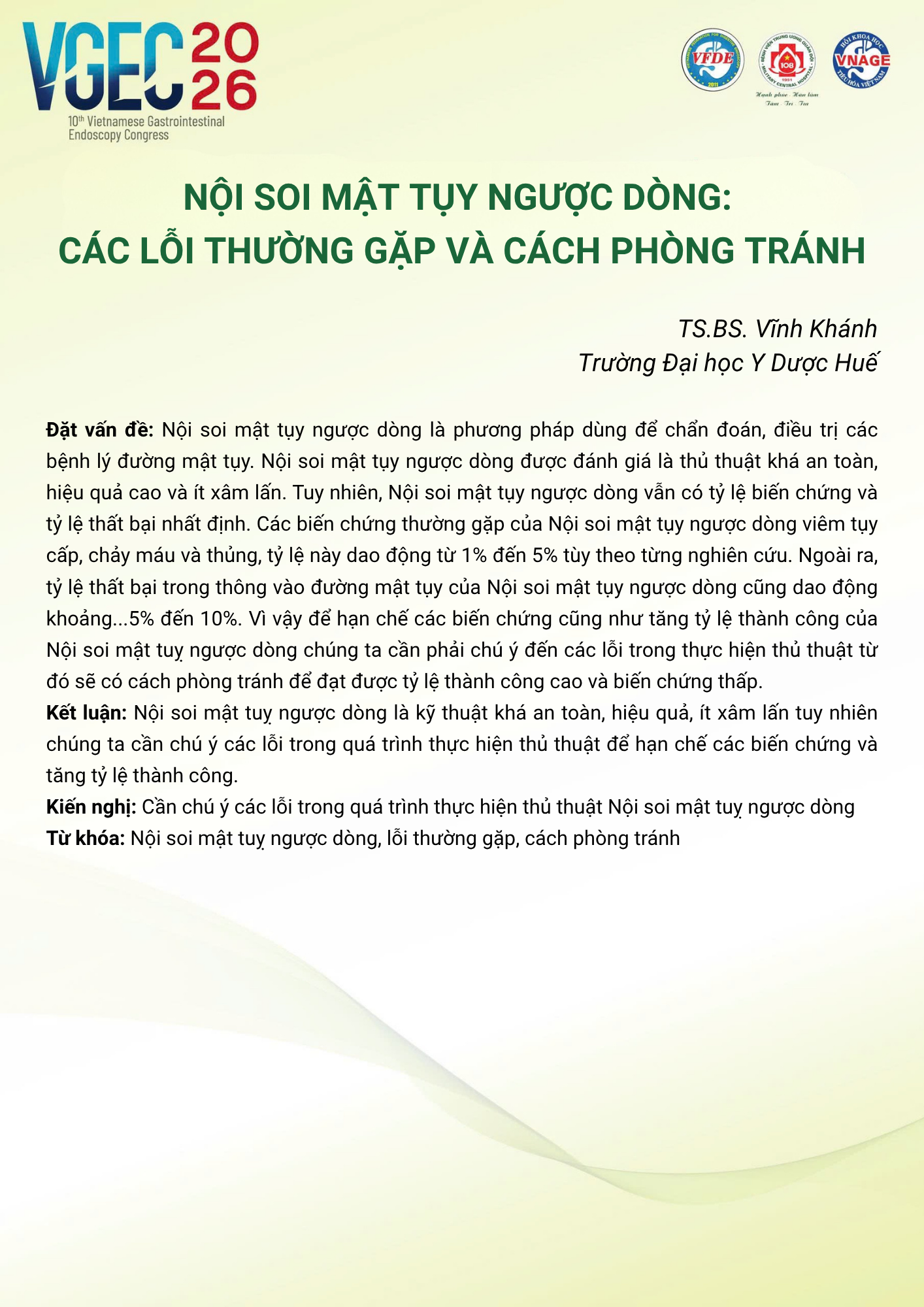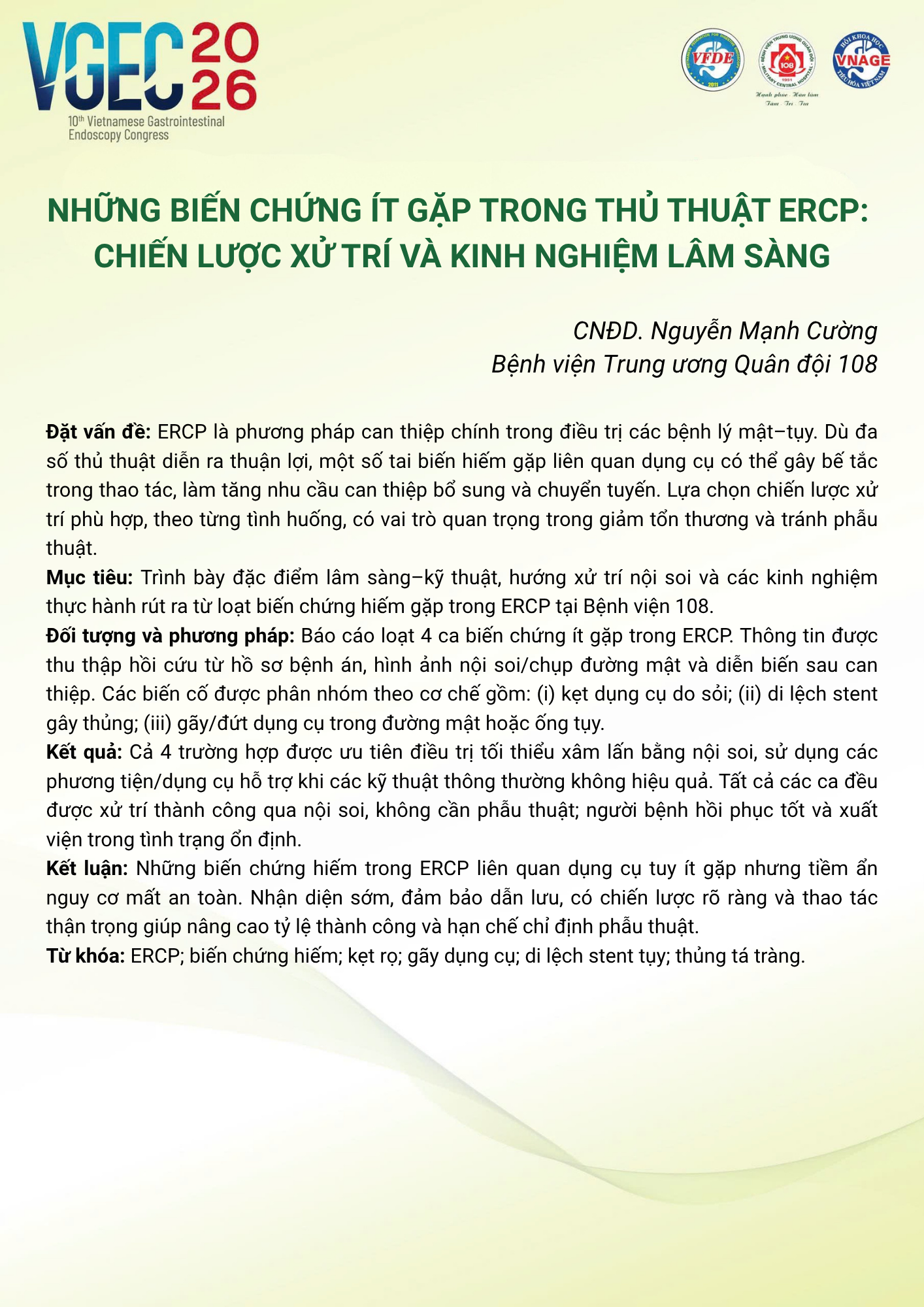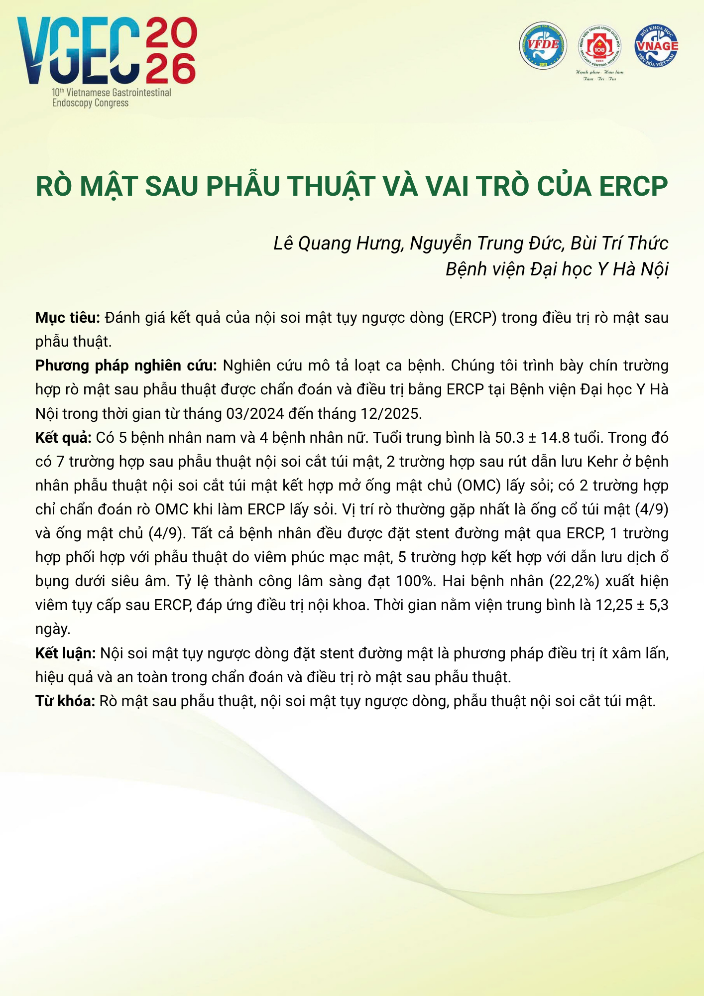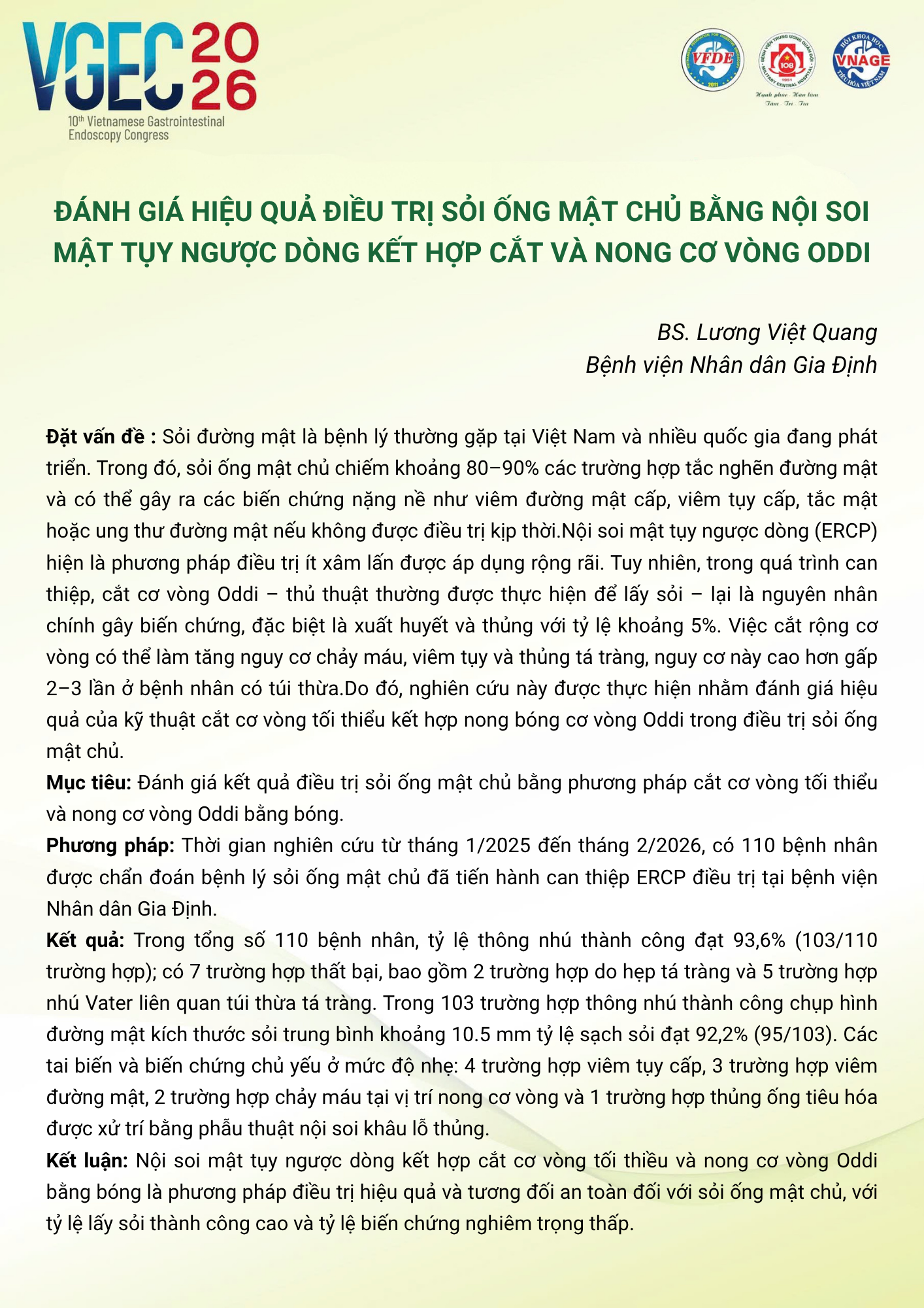 CHỦ ĐỀ: CHIẾN LƯỢC XỬ TRÍ SỎI ĐƯỜNG MẬT: VAI TRÒ CỦA ERCP VÀ NỘI SOI ĐƯỜNG MẬT