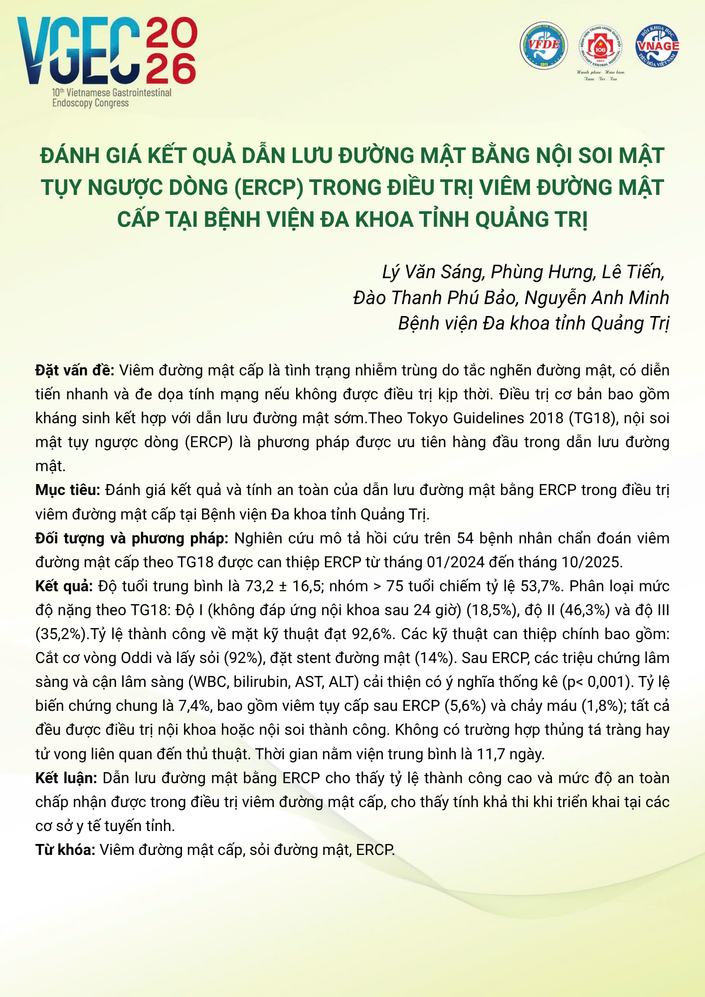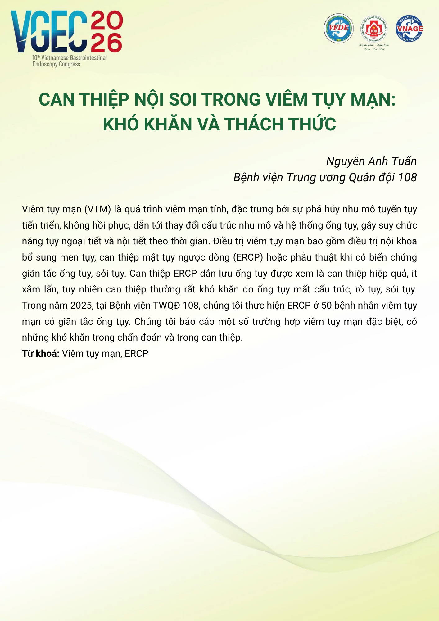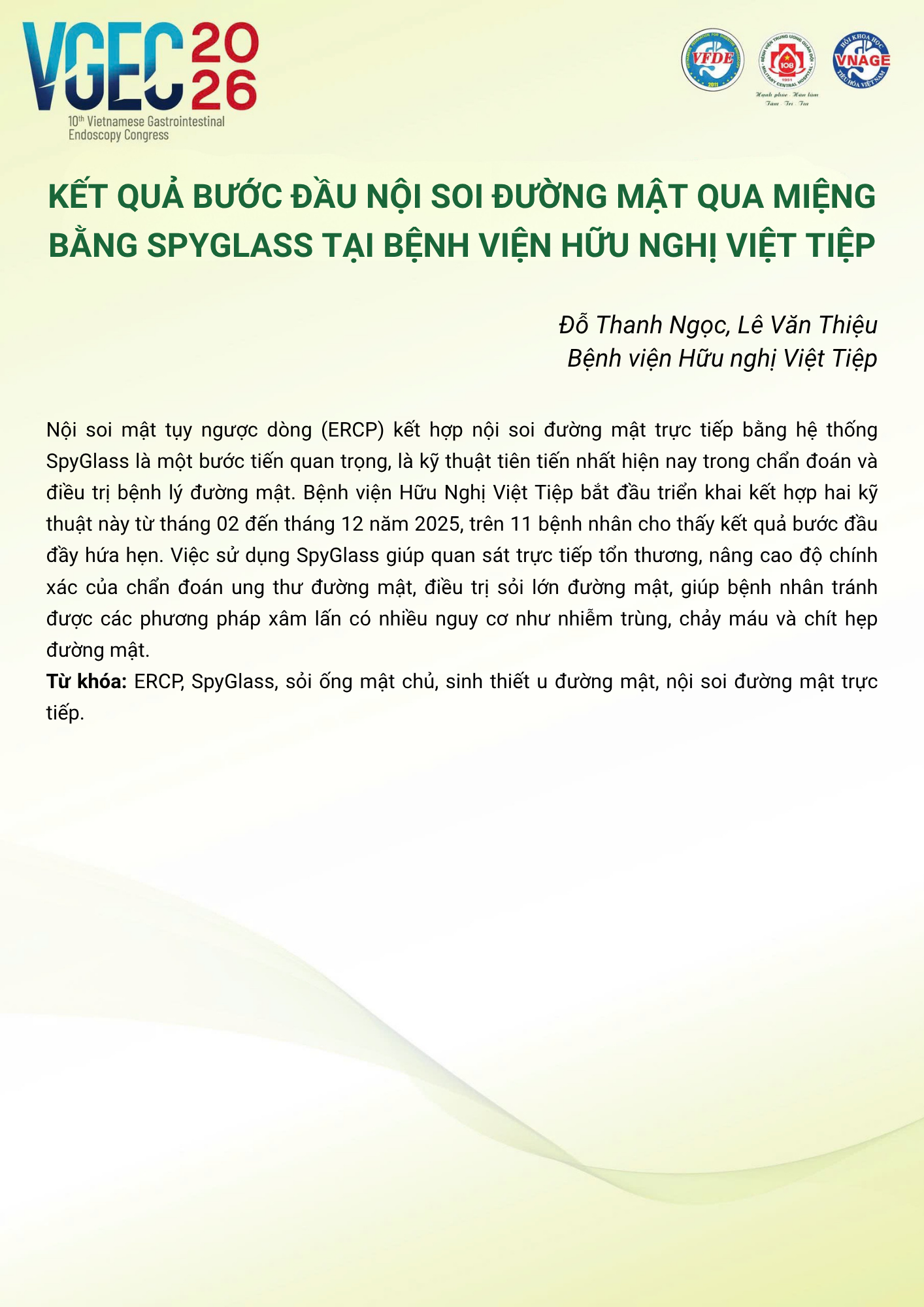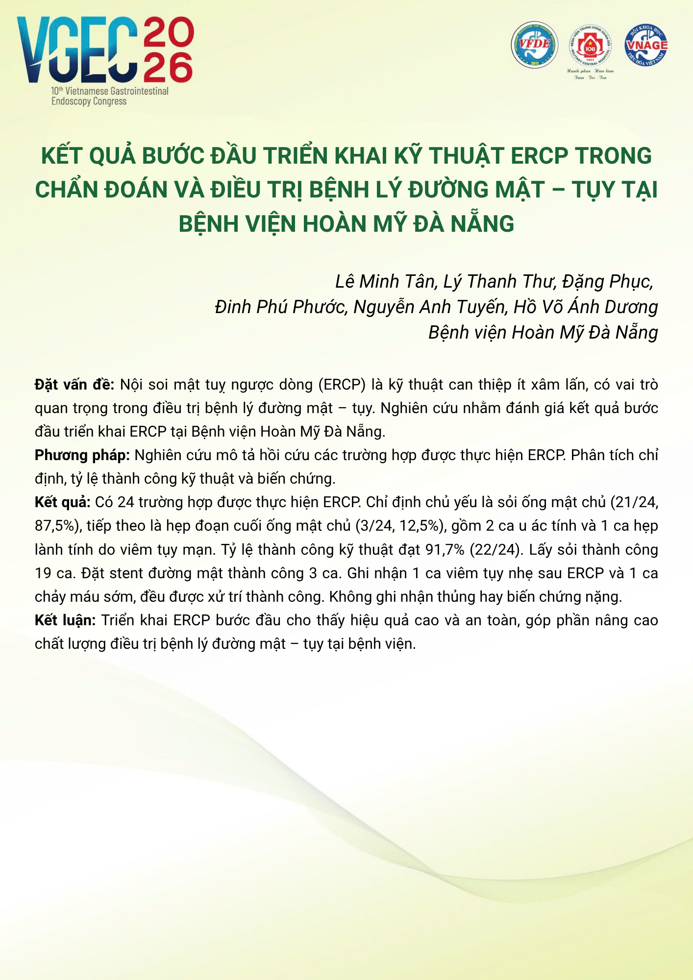 CHỦ ĐỀ: CHIẾN LƯỢC XỬ TRÍ SỎI ĐƯỜNG MẬT: VAI TRÒ CỦA ERCP VÀ NỘI SOI ĐƯỜNG MẬT