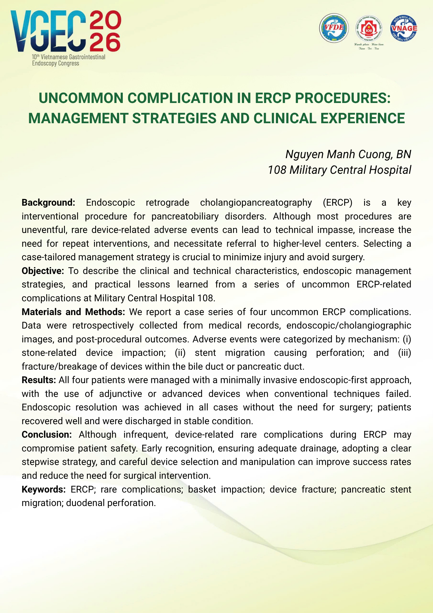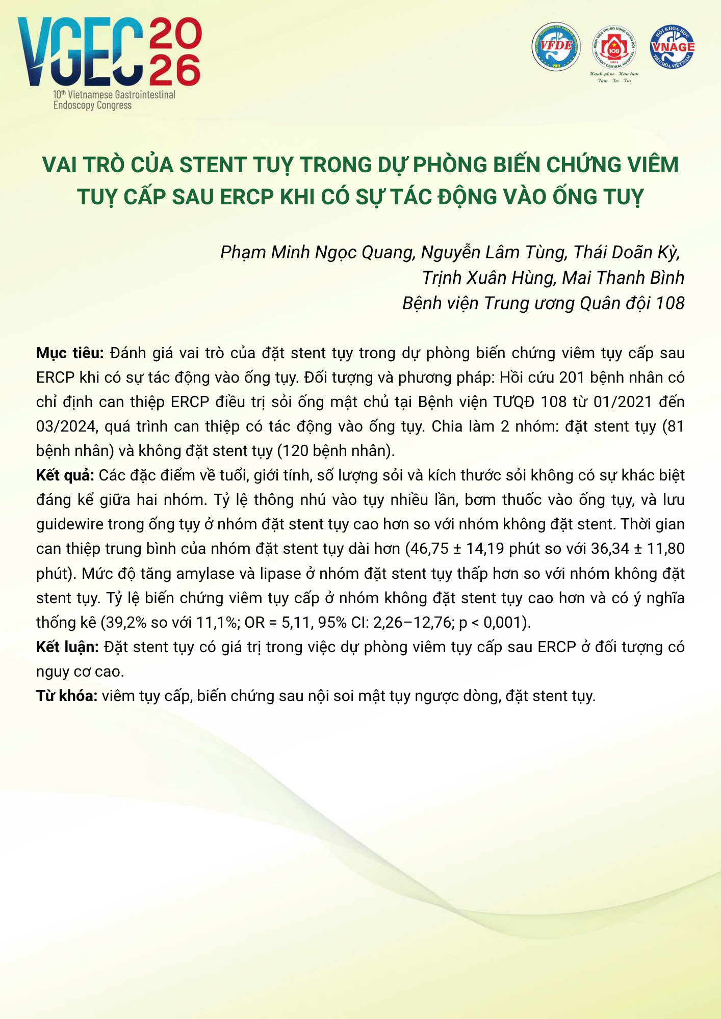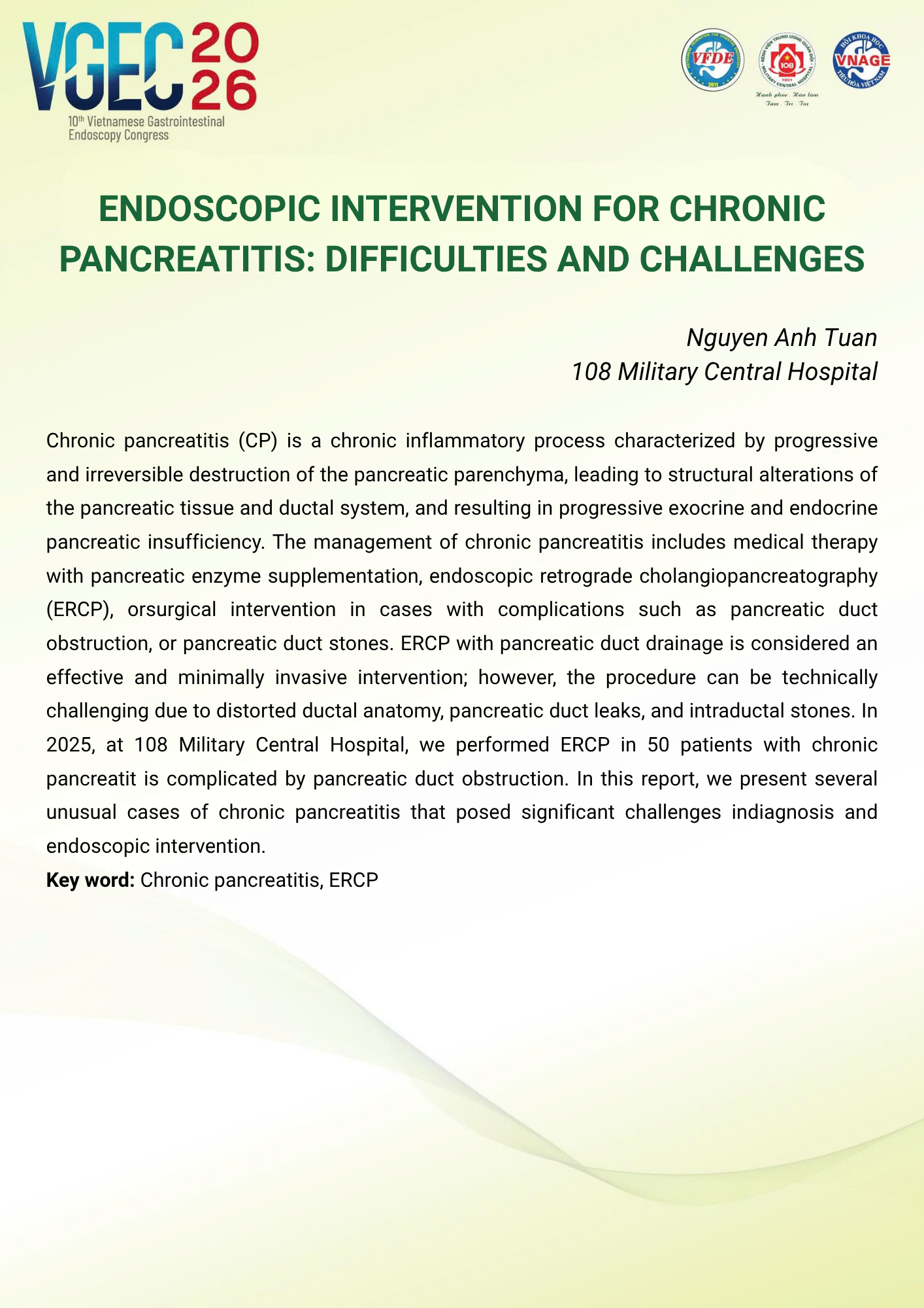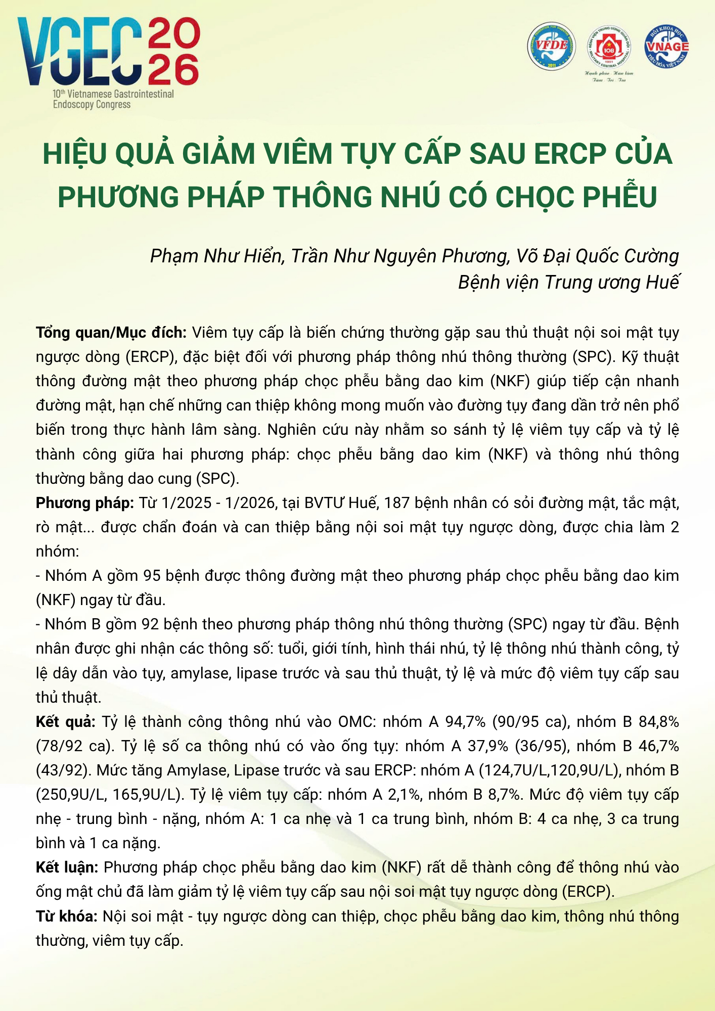 CHỦ ĐỀ: CHIẾN LƯỢC XỬ TRÍ SỎI ĐƯỜNG MẬT: VAI TRÒ CỦA ERCP VÀ NỘI SOI ĐƯỜNG MẬT