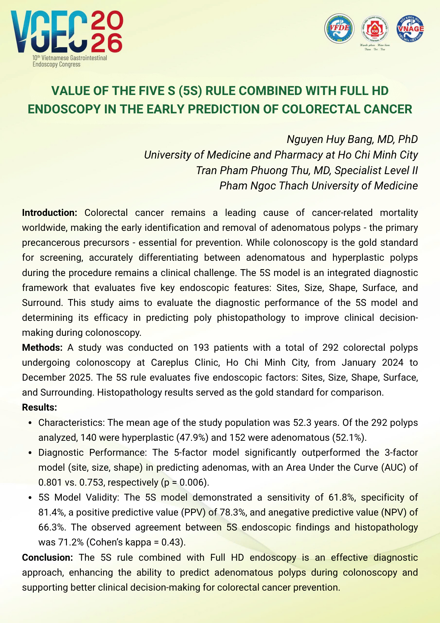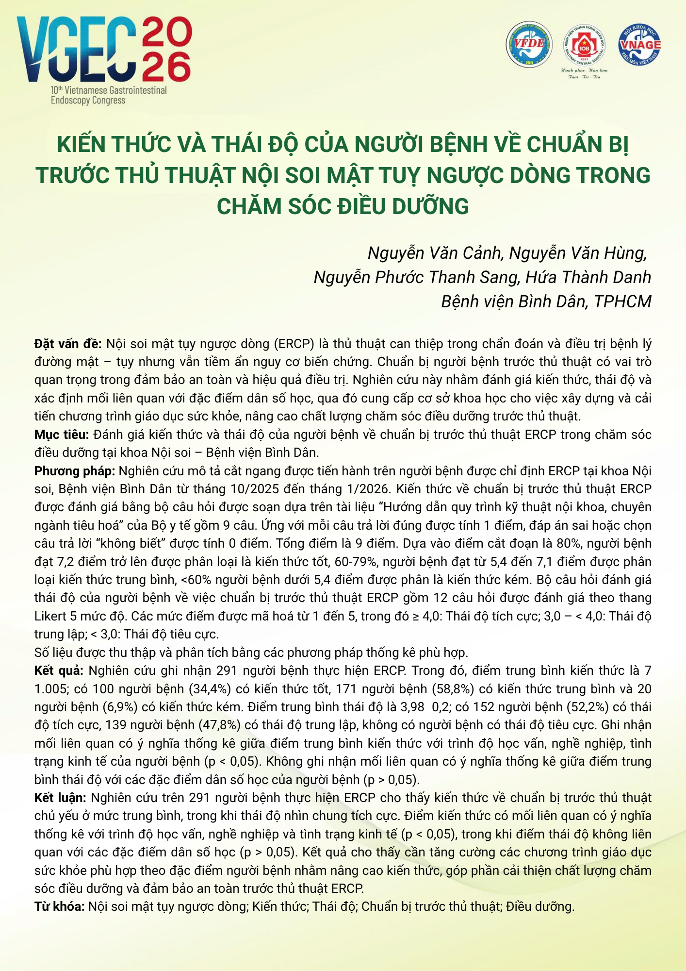 Chủ tọa đoàn [Moderators]: TS.ĐD Nguyễn Văn Cảnh, ThS.ĐD Trần Hoàng Phú, CN.ĐD Huỳnh Kiến Huy