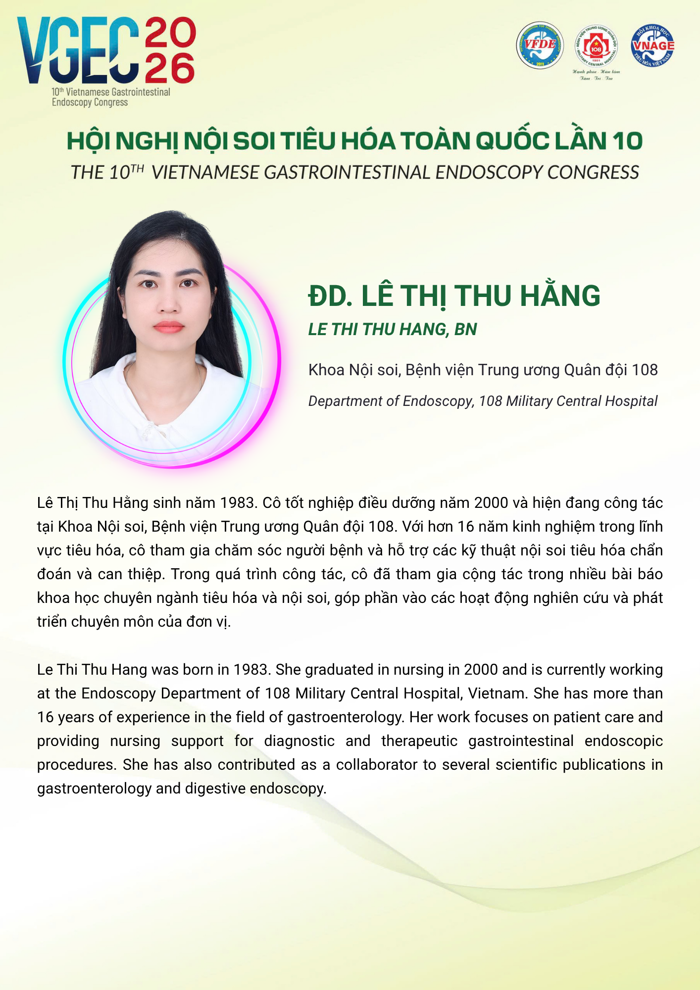 CN.ĐD Lê Thị Thu Hằng – Bệnh viện Trung ương Quân đội 108