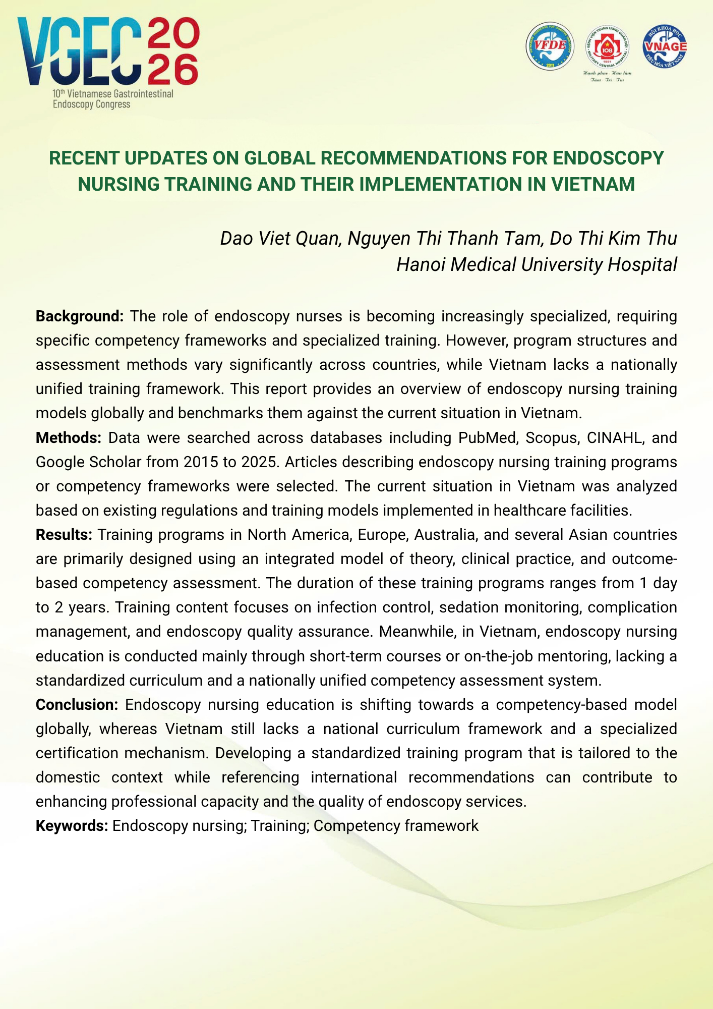 Topic: Training and development of endoscopy nursing: enhancing quality and advancing sustainability