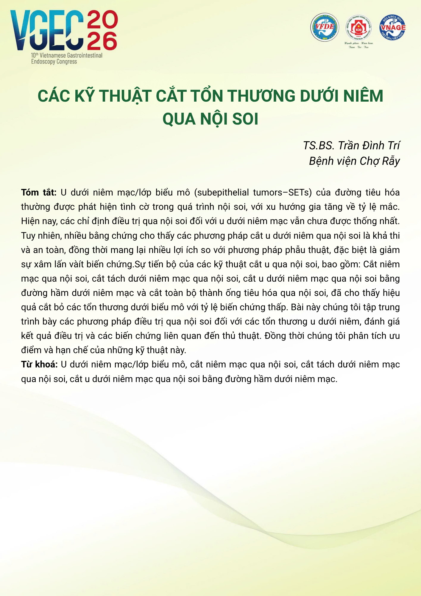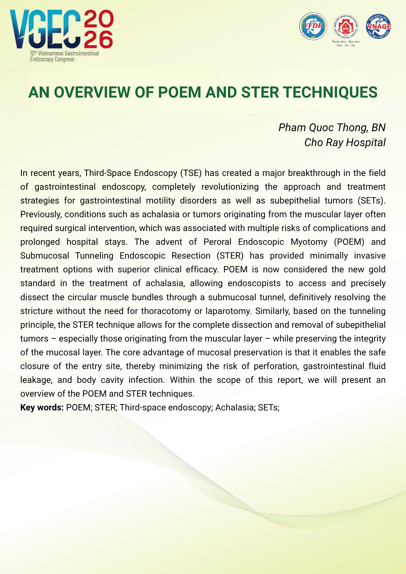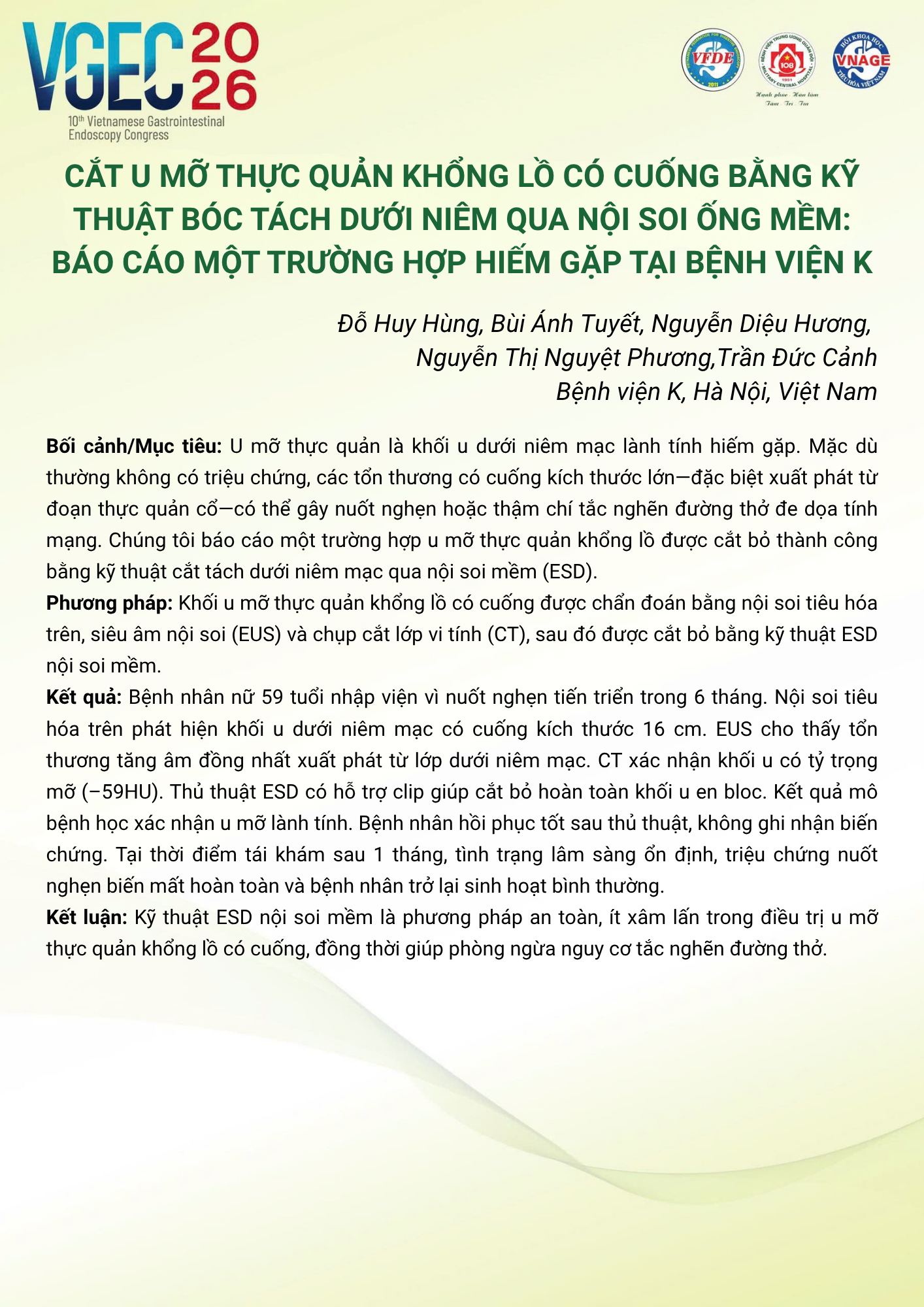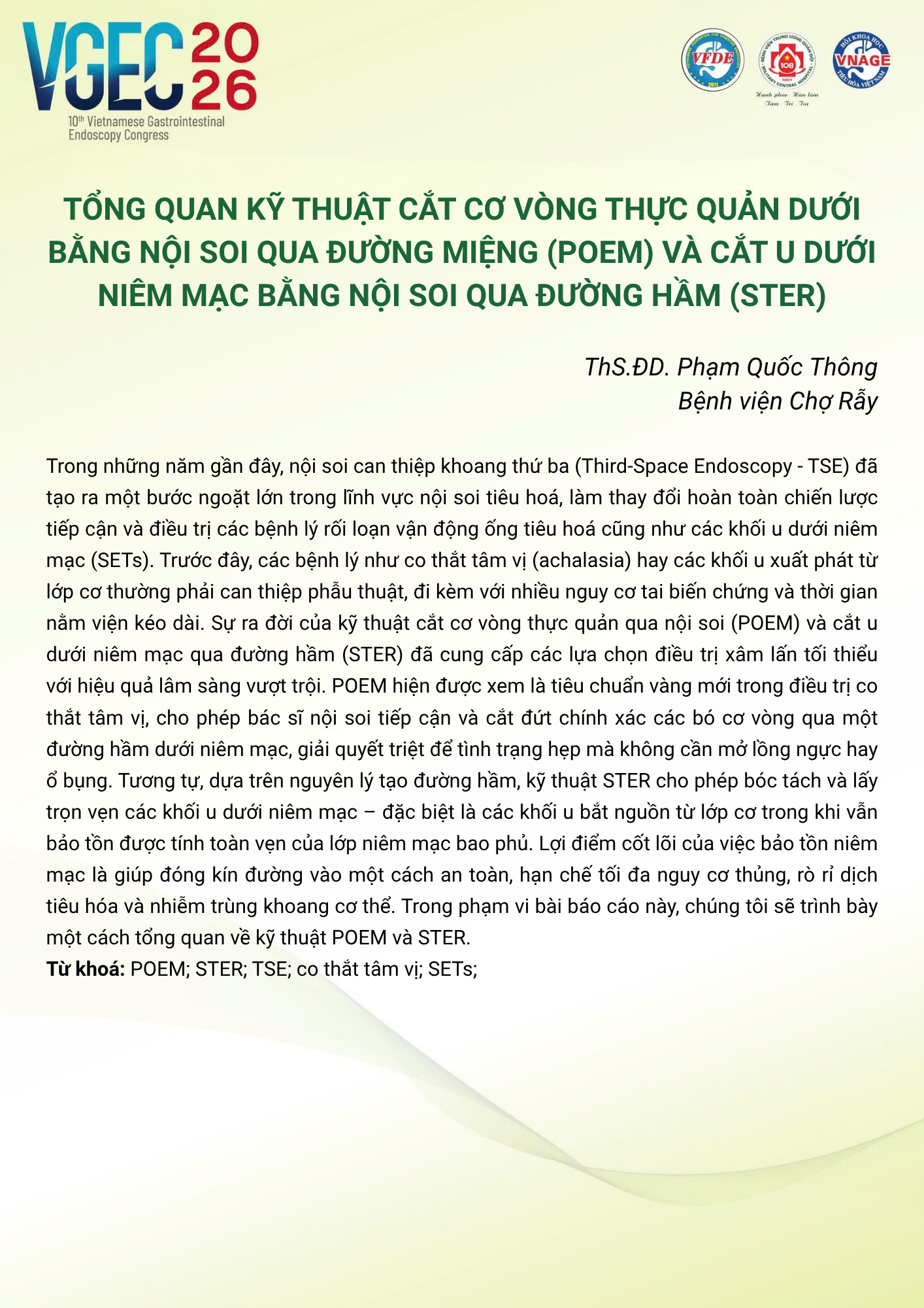 CHỦ ĐỀ: THIRD-SPACE ENDOSCOPY TRONG THỰC HÀNH LÂM SÀNG TẠI VIỆT NAM