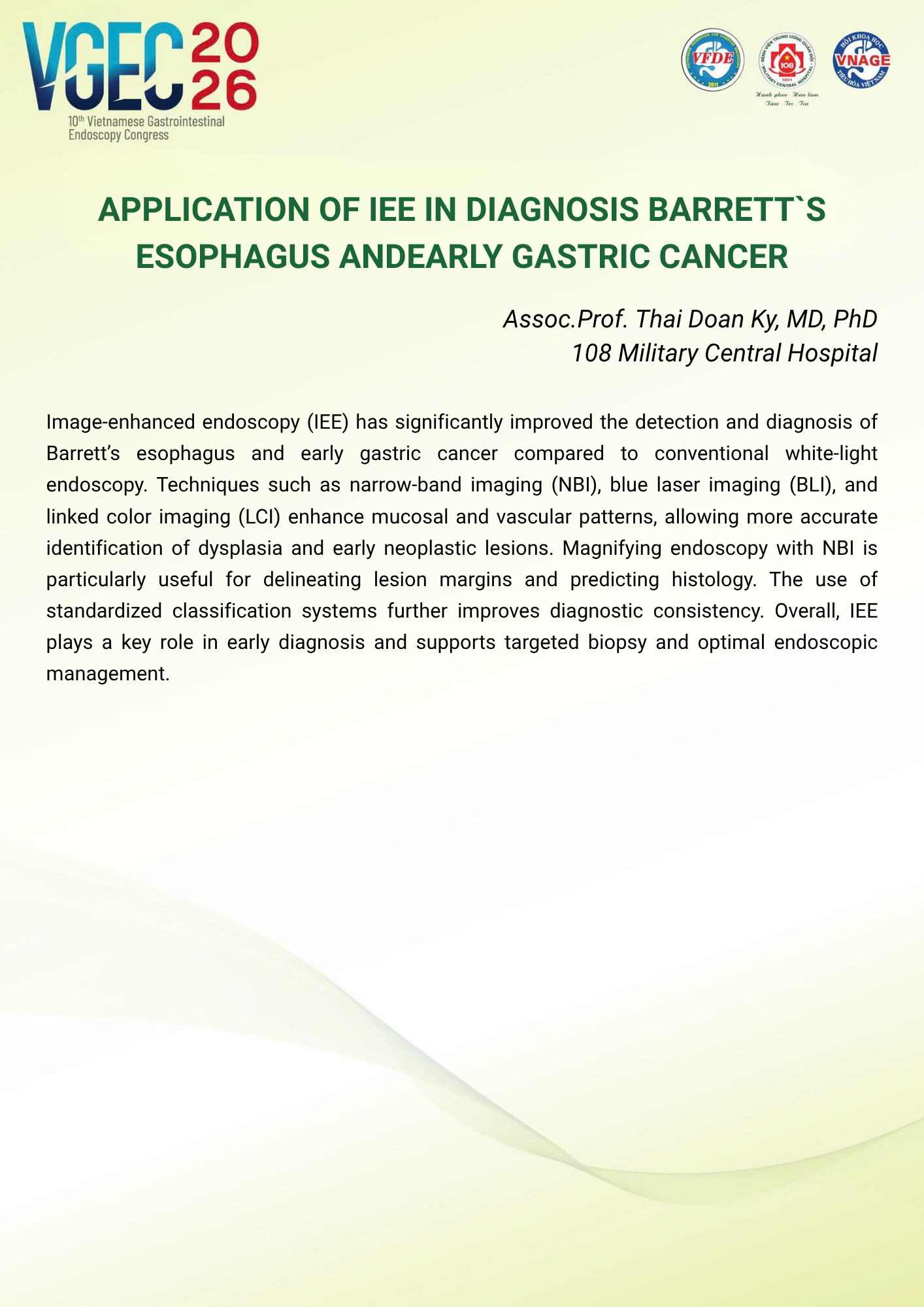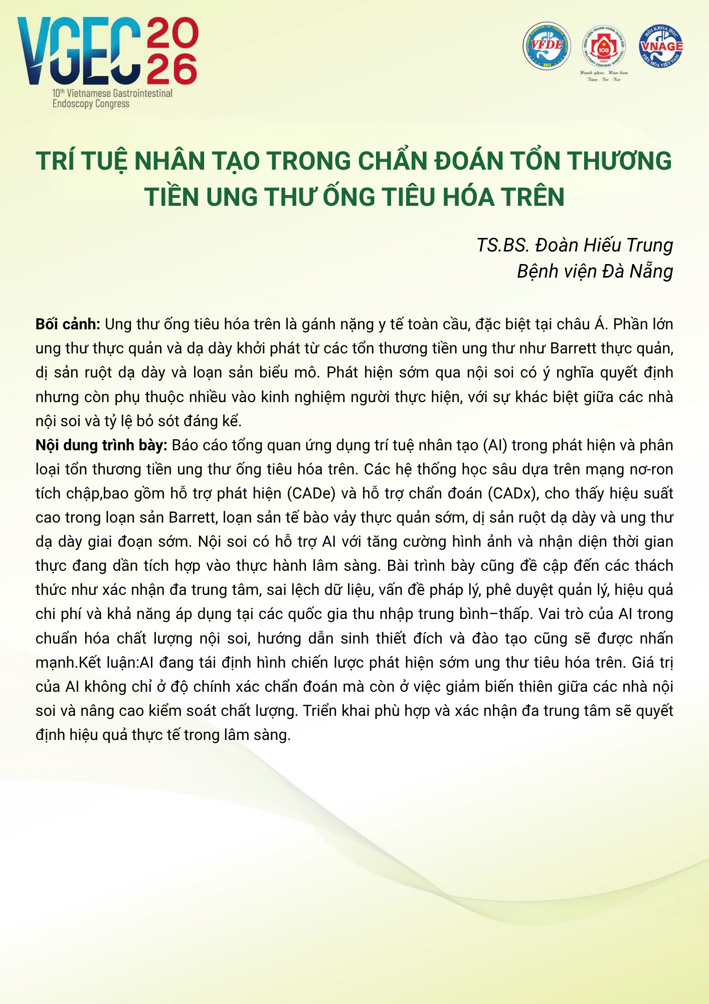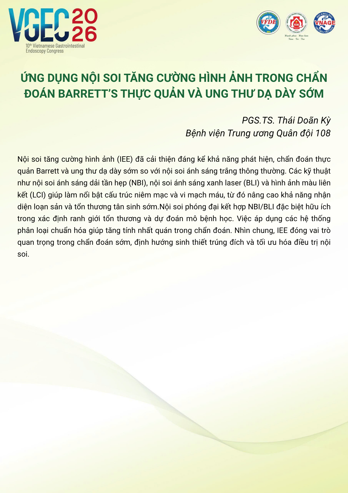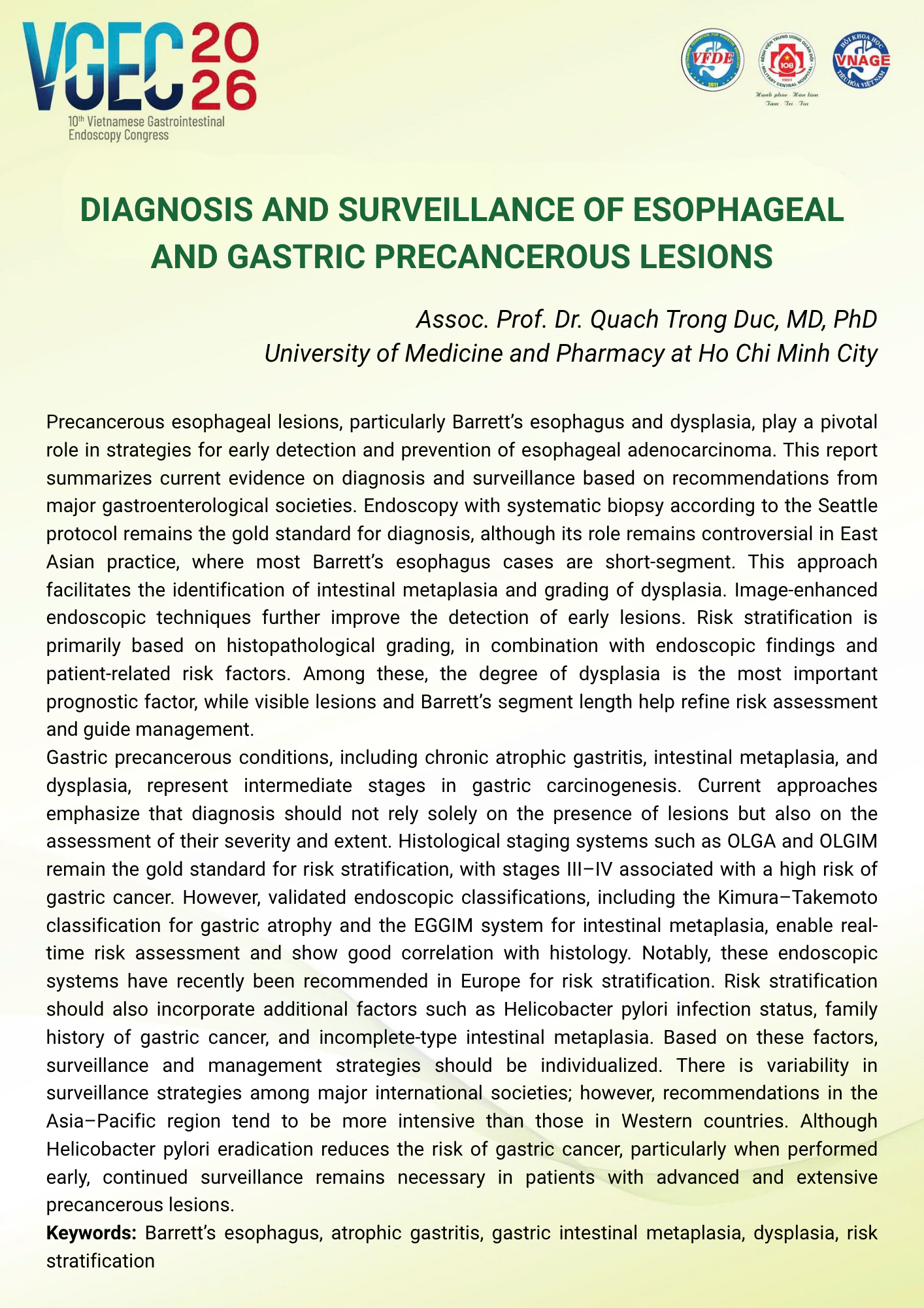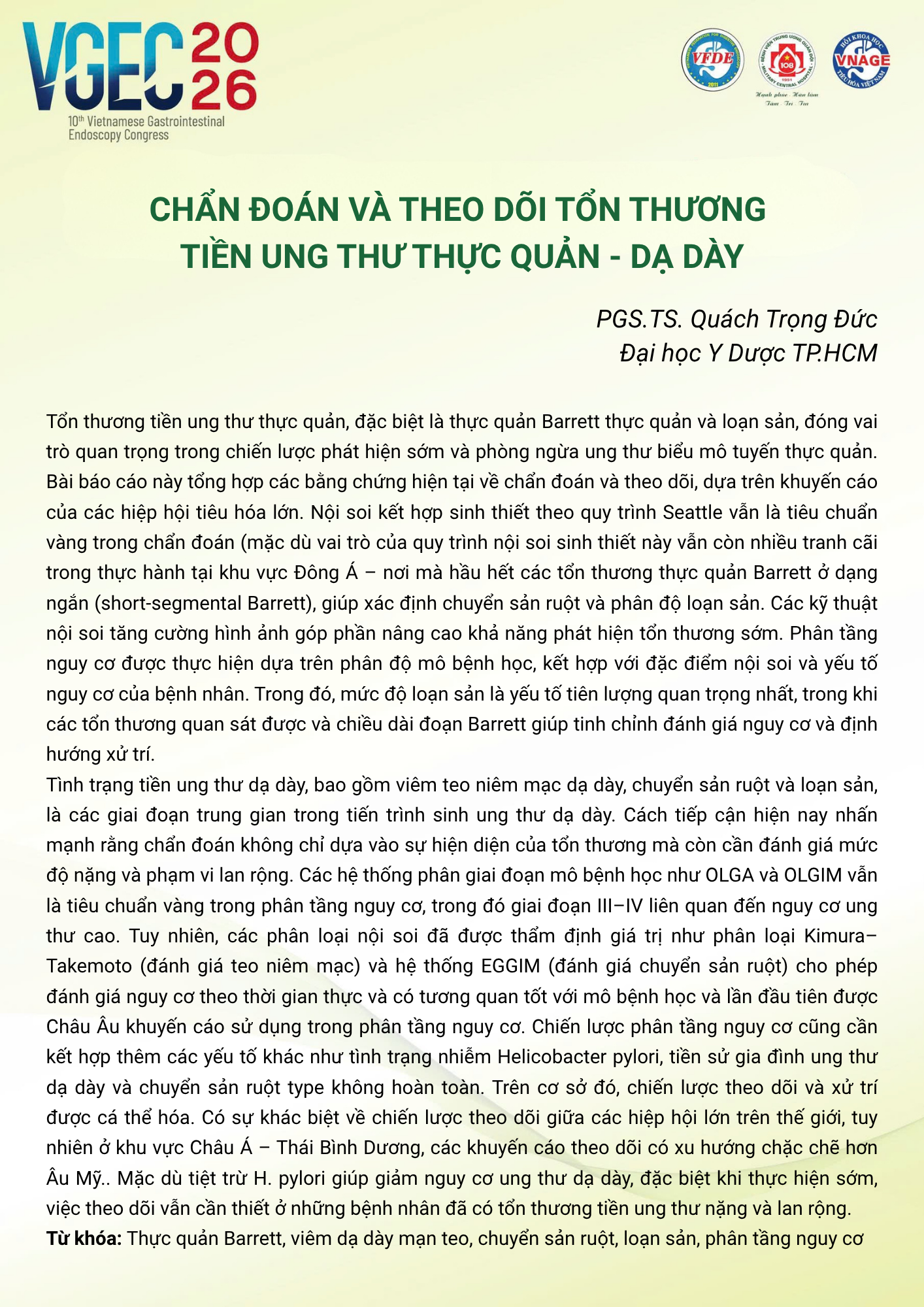 CHỦ ĐỀ: Nội soi trong chẩn đoán và quản lý các tổn thương tiền ung thư đường tiêu hóa trên