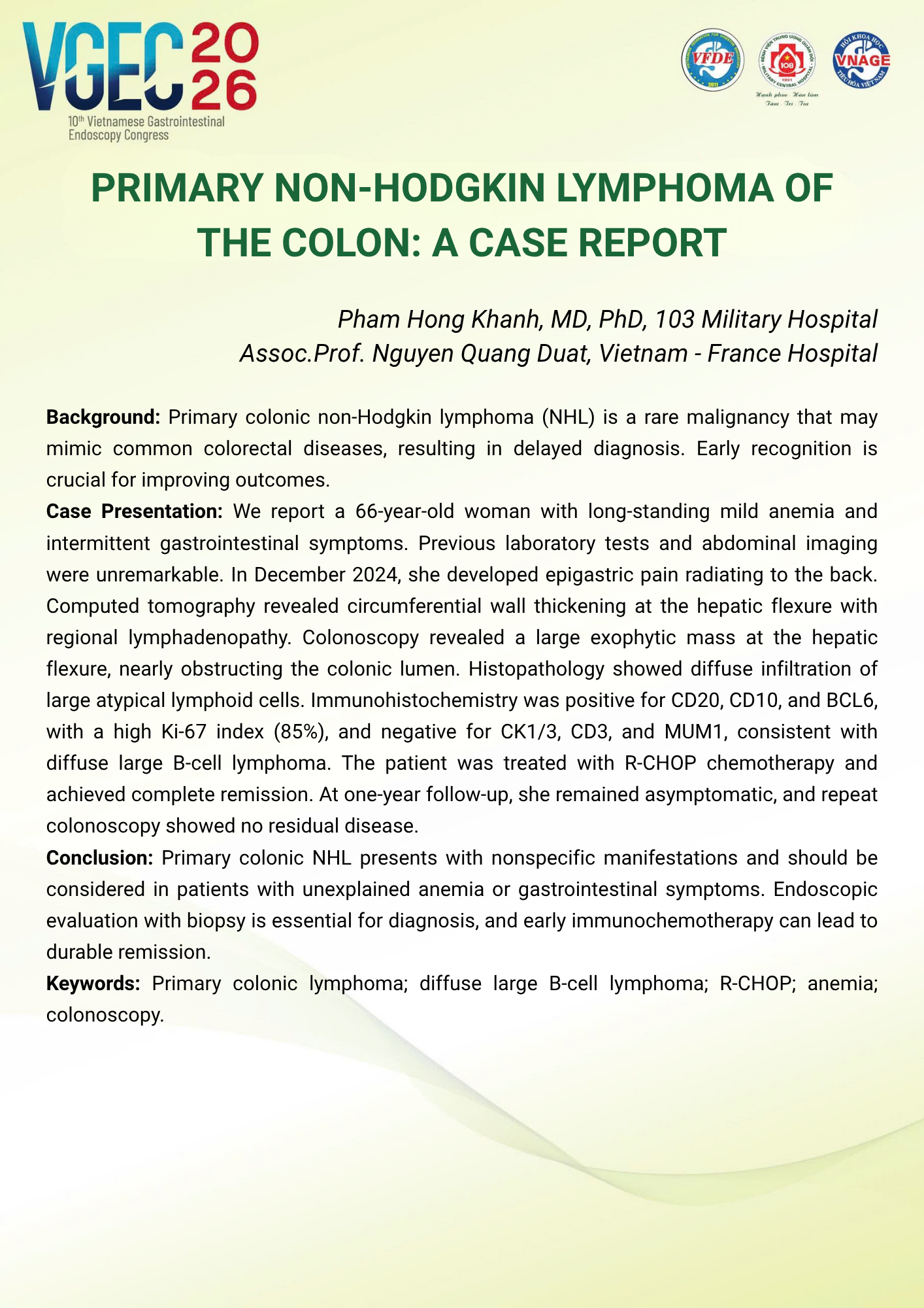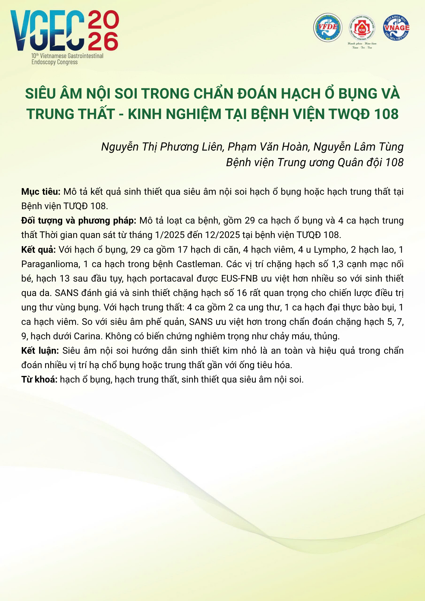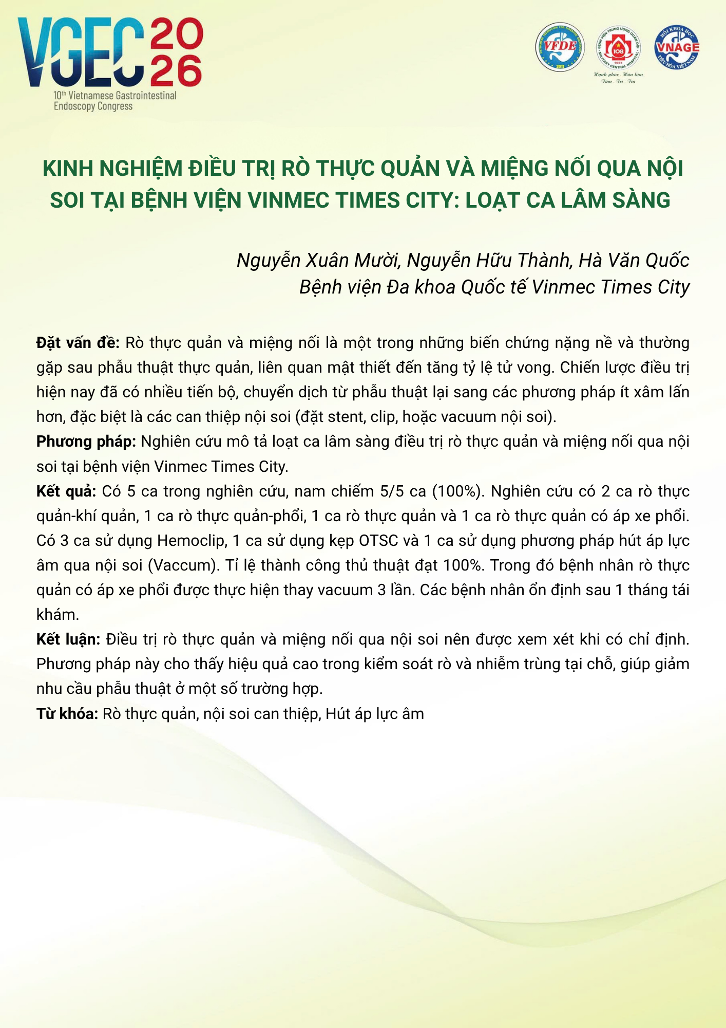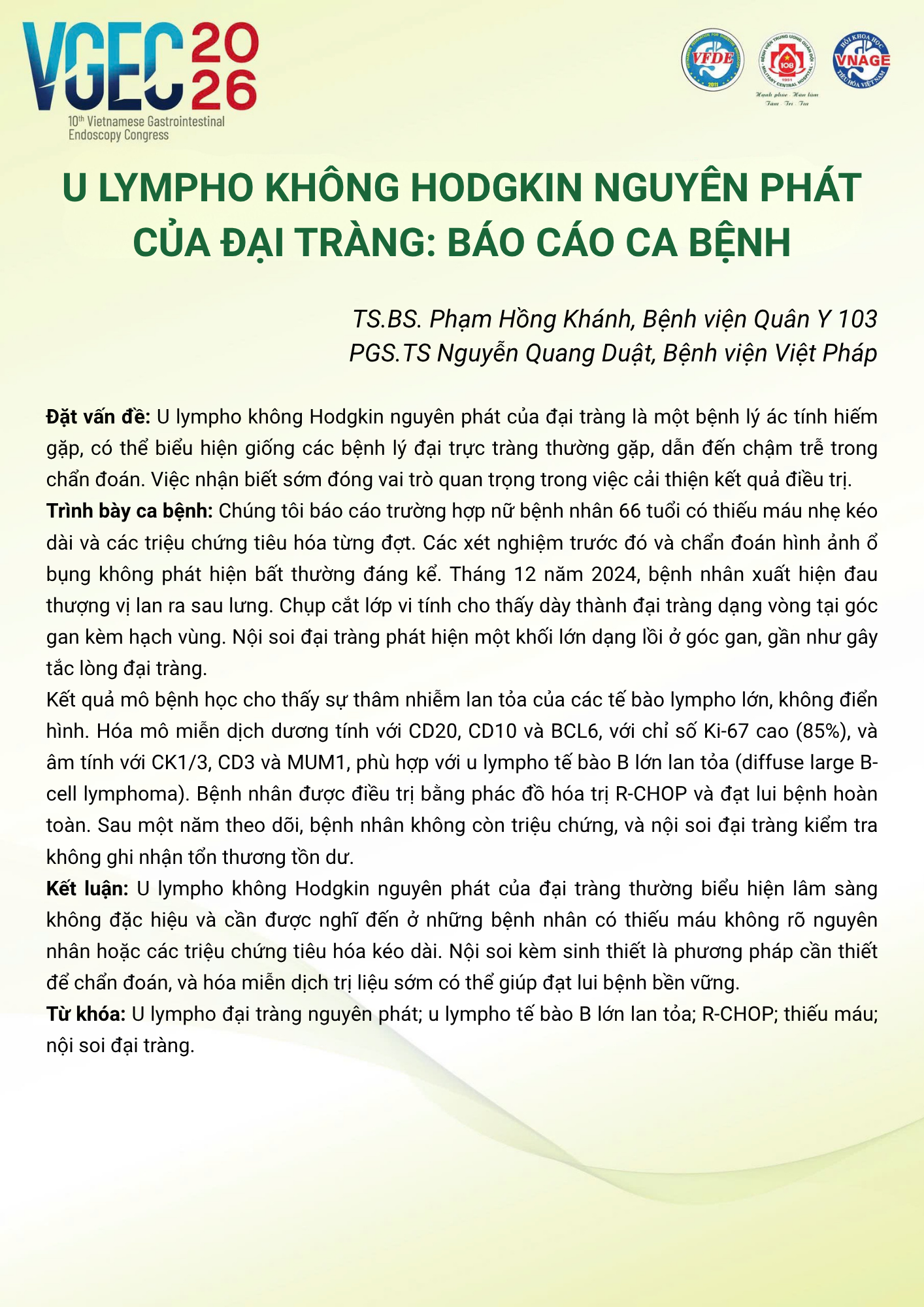 Chủ tọa đoàn [Moderators]: PGS.TS Vũ Văn Khiên, PGS.TS Nguyễn Thúy Vinh, TS.BS Đỗ Anh Giang, TS.BS Dương Minh Thắng