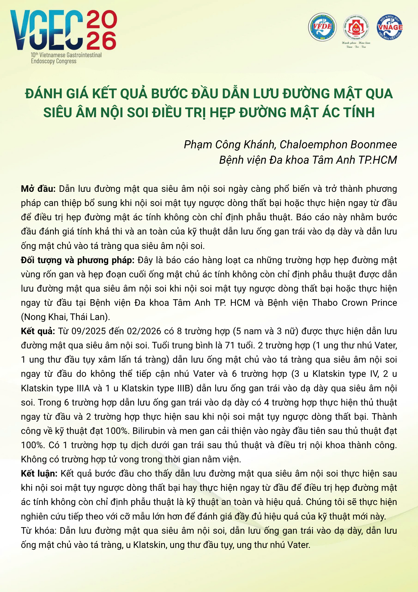 Chủ tọa đoàn [Moderators]: TS.BS Vũ Trường Khanh, Ths.Bs Đỗ Đức Trí Nhân, Ths.ĐD Bạch Thanh An