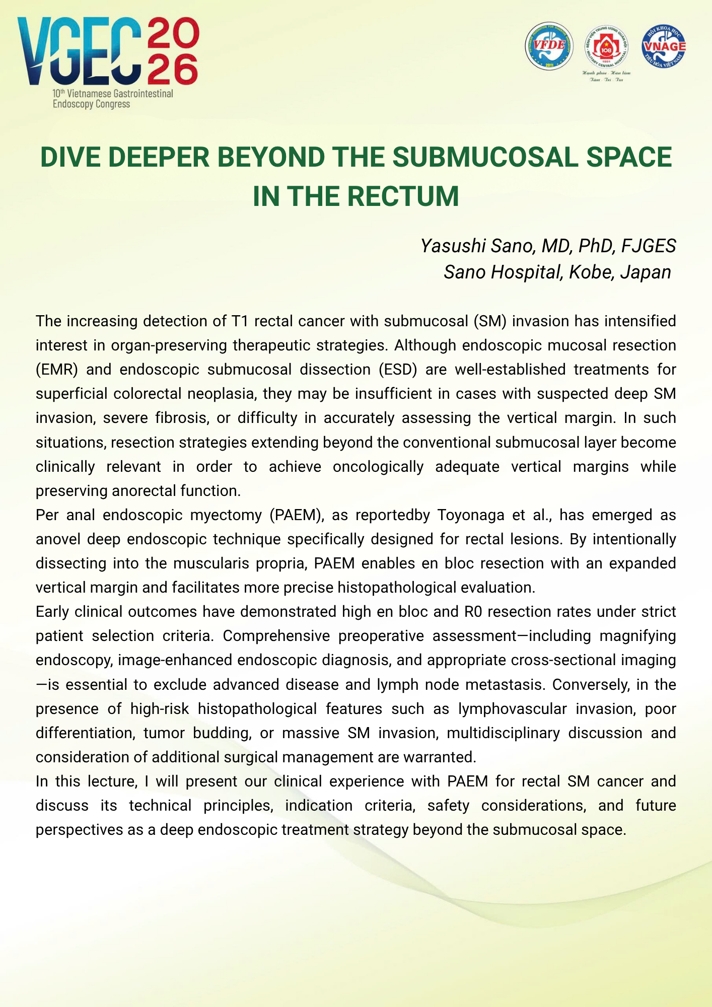 Topic: Updates in endoscopic resection techniques for colorectal neoplasms