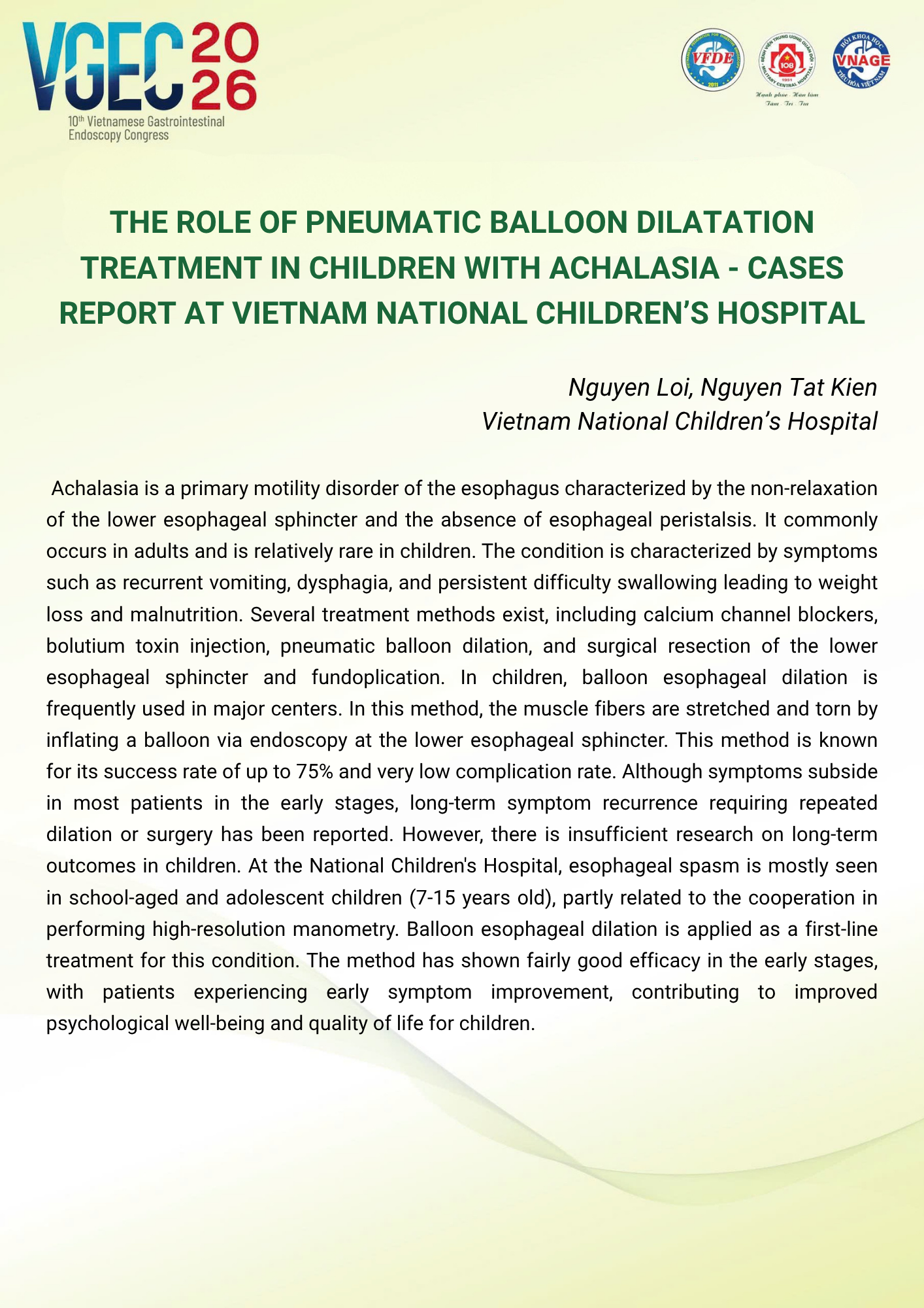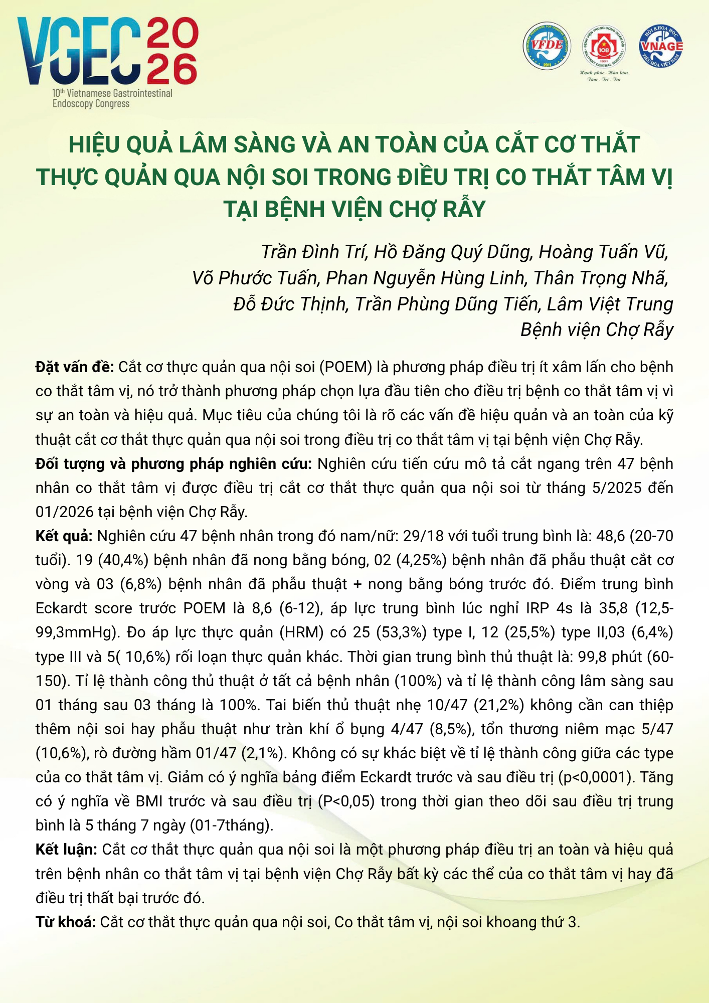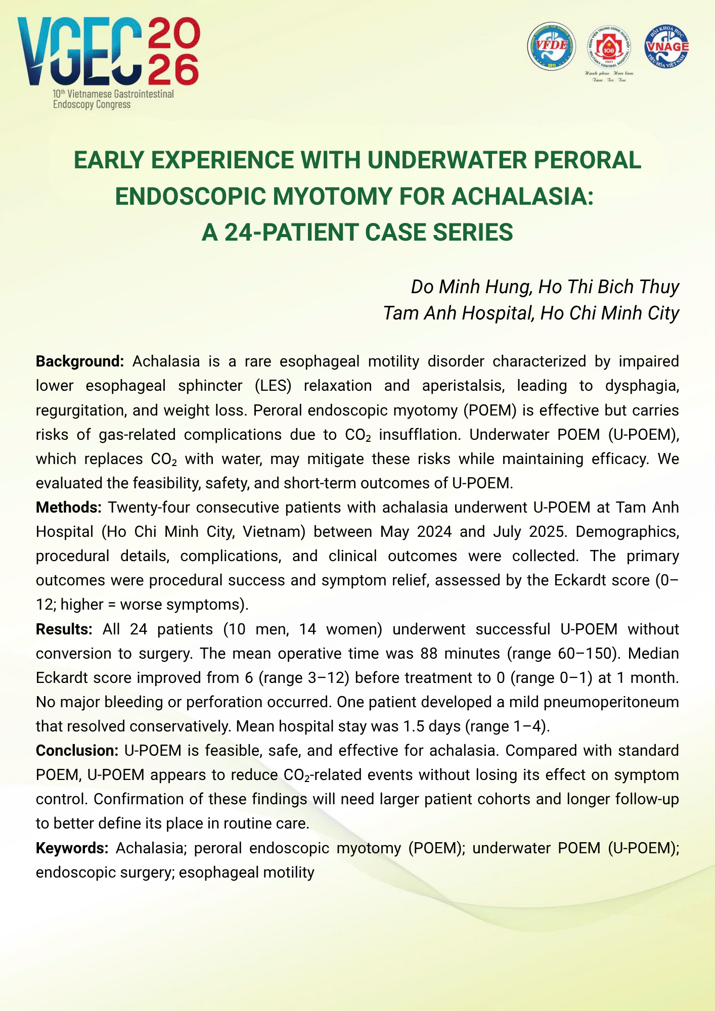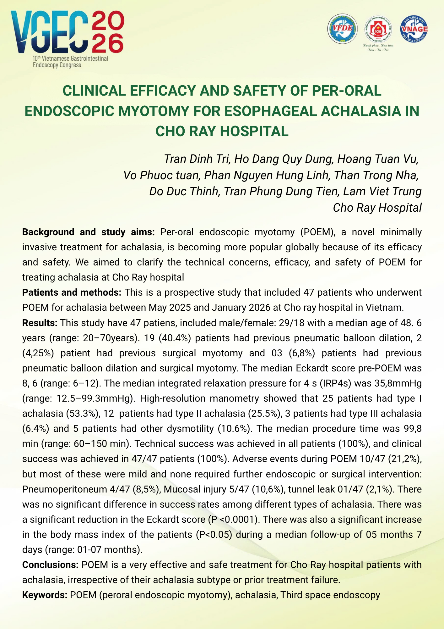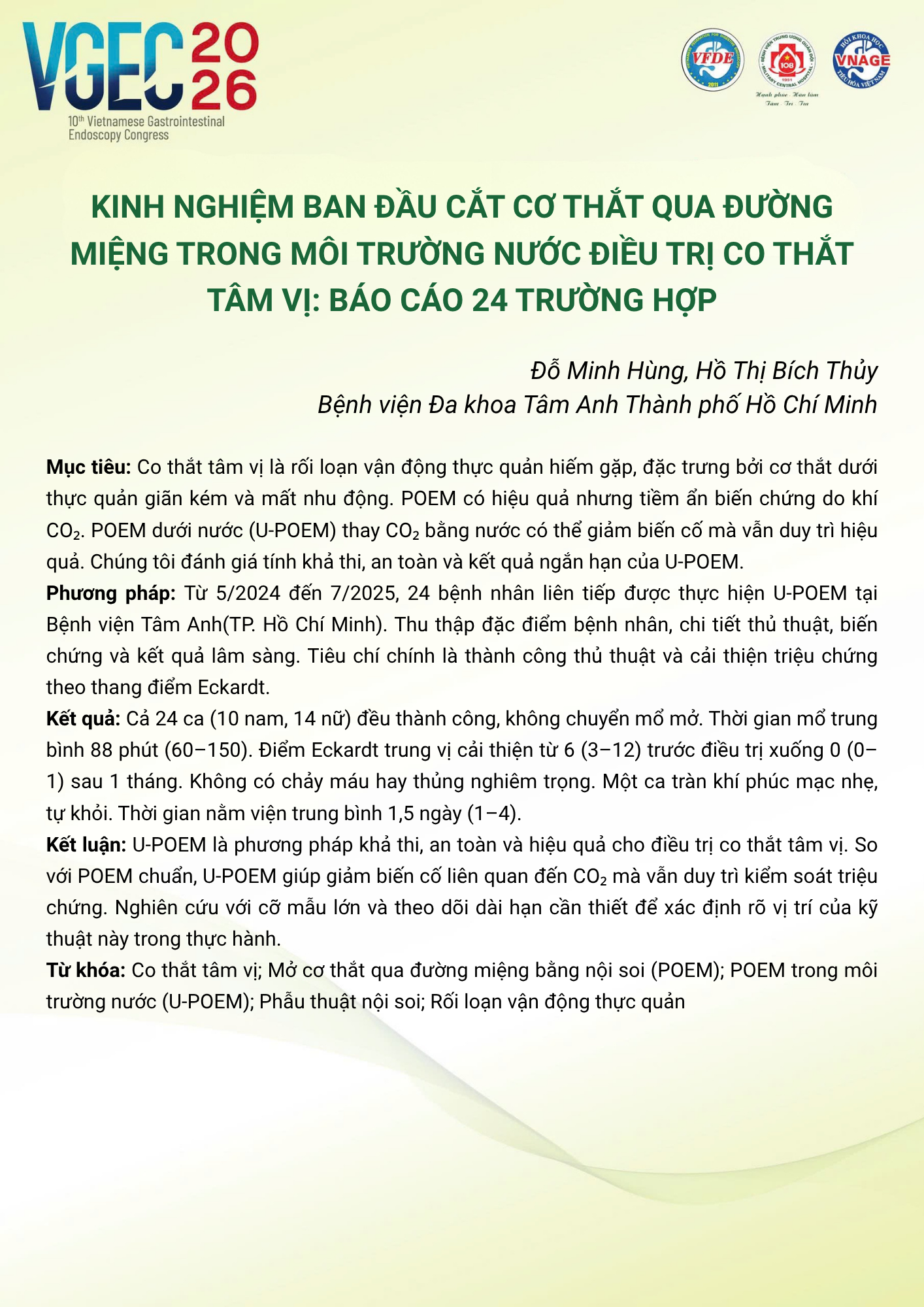 Topic: Third-Space Endoscopy in Clinical Practice in Vietnam