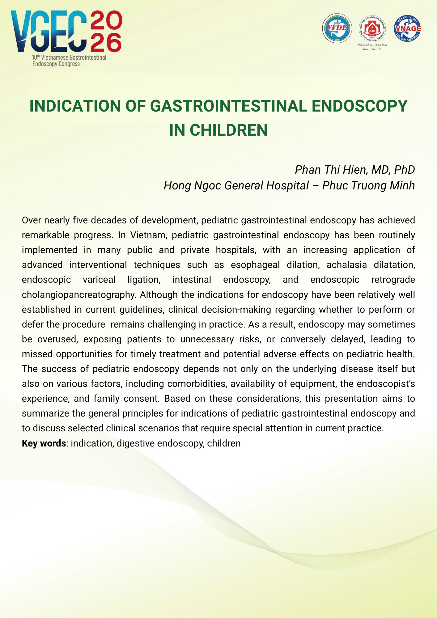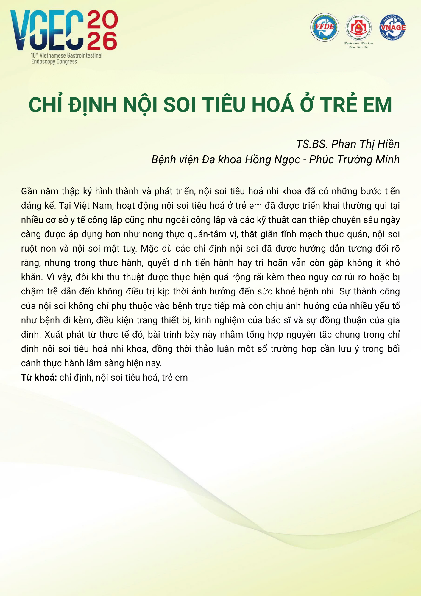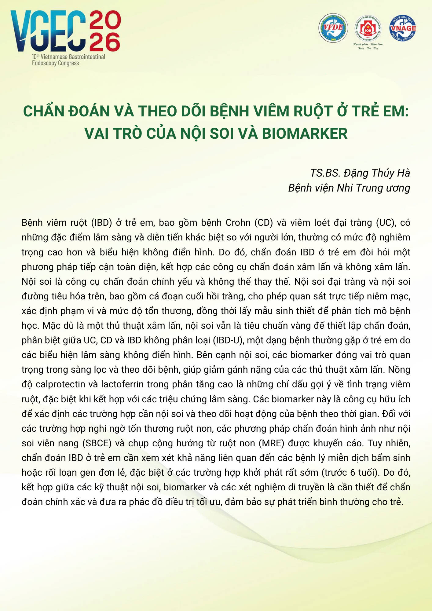 CHỦ ĐỀ: CẬP NHẬT NỘI SOI TIÊU HÓA Ở BỆNH NHÂN TRẺ EM